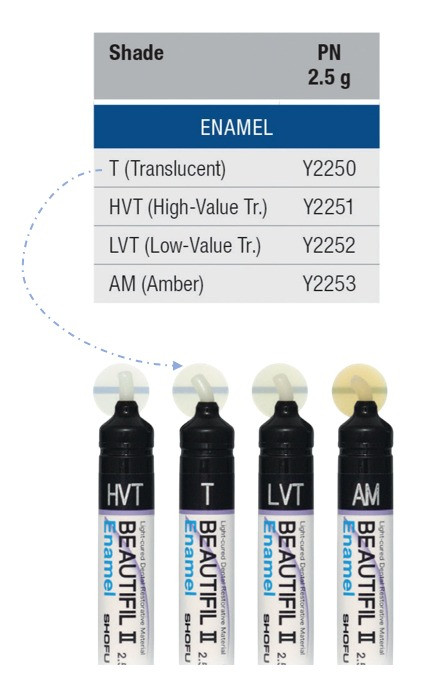 اناملی توسعه داده شدند.Beautifil II Enamelدر4رنگ طبیعی و شفاف موجود است که بازتولید رنگهای واقعی و تنظیم