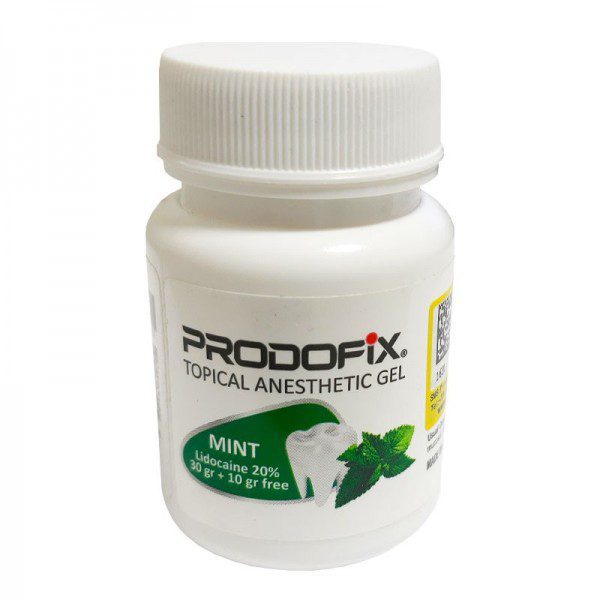 توضیحاتژل بی حسی پرودوفیکس:این محصول برای بی حسی دندان مورد استفاده قرار می گیرد وبصورت مستقیم روی پوست یا داخل مخاط دهان بهکار میرود.کاربرد اصلی ژل بی حسی برای کاهش درد ناشی از تزریق آمپول بی حسی، جلوگیری از حالت تهوع هنگام تهیه رادیوگرافی،قالبگیری یا درمان با فلوراید و برداشتن بخیه یا هنگام جرمگیری می باشد.همچنین می توان از این محصول برای کورتاژ لثه و انجام پروفیلاکسی نیز بکار برد.ژل بی حسی پرودوفیکس سریع الاثر بوده و تاثیر بی حسی آن مدت طولانی تری ماندگاری داردو بنزوکائین موجود در این ژل سبب تسکین درد موقت و بی حسی موضعی در قسمت مورد نظر می شود.