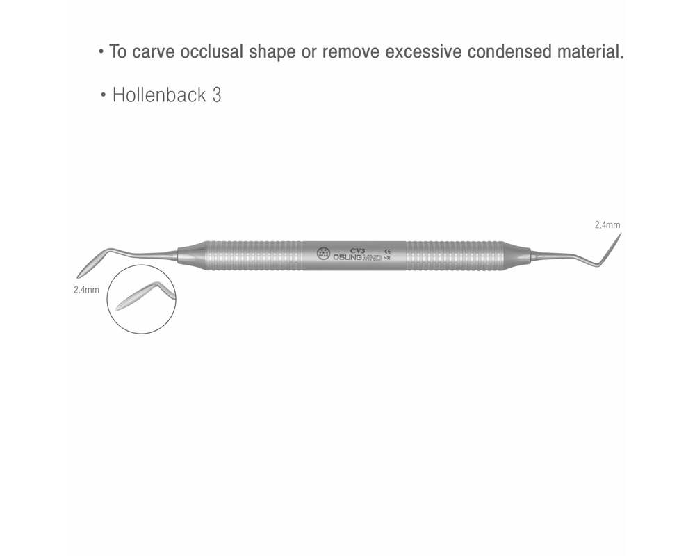 کارور هولن باخ - Hollenback Carver:جهت فرم دادن آناتومی اکلوزال و پروگزیمال،در رستوریشن های آمالگام مناسب است.دارای لبه ها و نوک تیز است.کارور هولن باخ No.3 برند مدچی باجنس استیل در فروشگاه اینترنتی دندانت عرضه میگردد.****بهترین برندهایکاروررا از فروشگاه اینترنتی دندانت تهیه کنید********بهترینابزار ترمیمیدر فروشگاه اینترنتی دندانت****