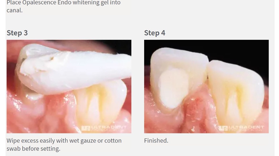 توضیحاتطول دوره درمان 3 الی 5 روزیک انتخاب عالی برای سفید کردن دندانها در عین حفظ ساختار طبیعی آنهاارائه یک بلیچینگ کاملا تمیز و سریع با کمک سرنگ محصولایمنی چشمگیر حاصل از چسبندگی مناسب موادحذف لکههای ایجاد شده بر روی دندانهااین محصول به راحتی لکههای ایجاد شده بر روی دندان را از بین میبرد. دندانپزشک این محصول را به مدت 3 الی 5 روز درون دندان پانسمان شده قرار میدهد و در مراجعه بعدی، دندانپزشک آن را تعویض میکند.نحوه استفاده از کیت بلیچینگ اندو 35٪ اولترادنت1. قبل از اینکه فرایند درمان صورت گیرد، لازم است تا گلاس آینومر را بر روی pulp chamber قرار دهید تا به این صورت از ورود هیدروژن پروکساید به obturation جلوگیری کنید.2. سپس اوپال سنس اندو را بر روی کانال دندان قرار دهید.3. حال لازم است تا به صورت مستقیم مواد را با سرنگ اسکینی به محل مورد نظر وارد کنید.4. در نهایت مواد اضافی را با گاز پاک کنید.