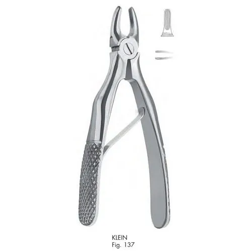 فورسپس مولر فک بالا اطفال - Pediatric Upper Molars Forceps:این فورسپس جهت استفاده دندان های مولر اطفال مورد استفاده قرار می گیرد.ظرافت خاص در ساخت قسمت فوقانی دارد و لبه های بالا و پایین فورسپس دندانه دار است.مشابه نمونه های اروپایی طراحی و تولید شده است.طول فورسپس 13 سانتی متر و طول کاربردی آن 2 سانتی متر است.فورسپس مولر فک بالا اطفالبرند دنتال دیوایسبا جنس استیل عرضه می گردد.**** خریدفورسپسبا بهترین قیمت کلیک کنید ******** خرید بهترینابزار دندانپزشکیبا کیفیتی تضمینی تنها در دندانت ****