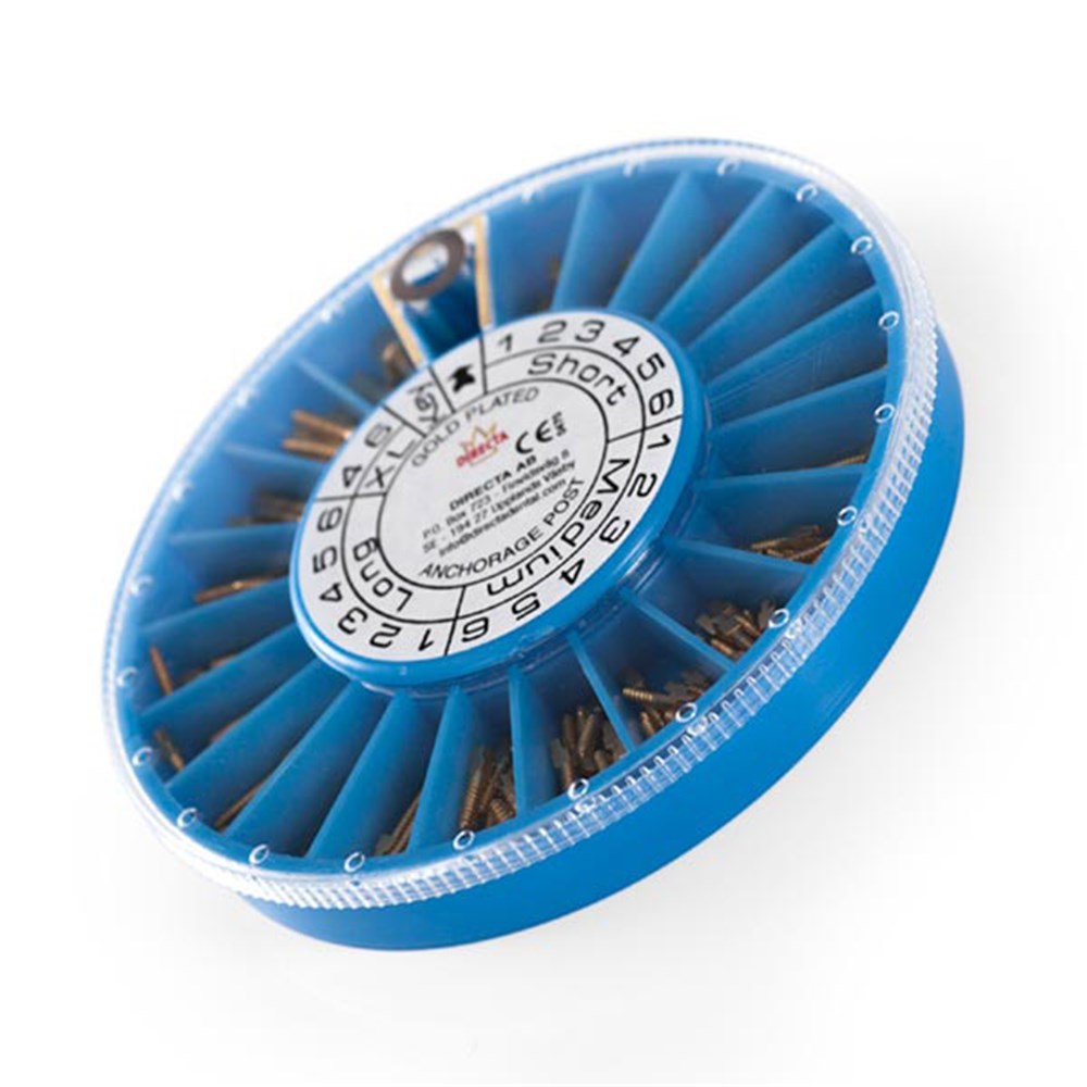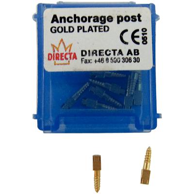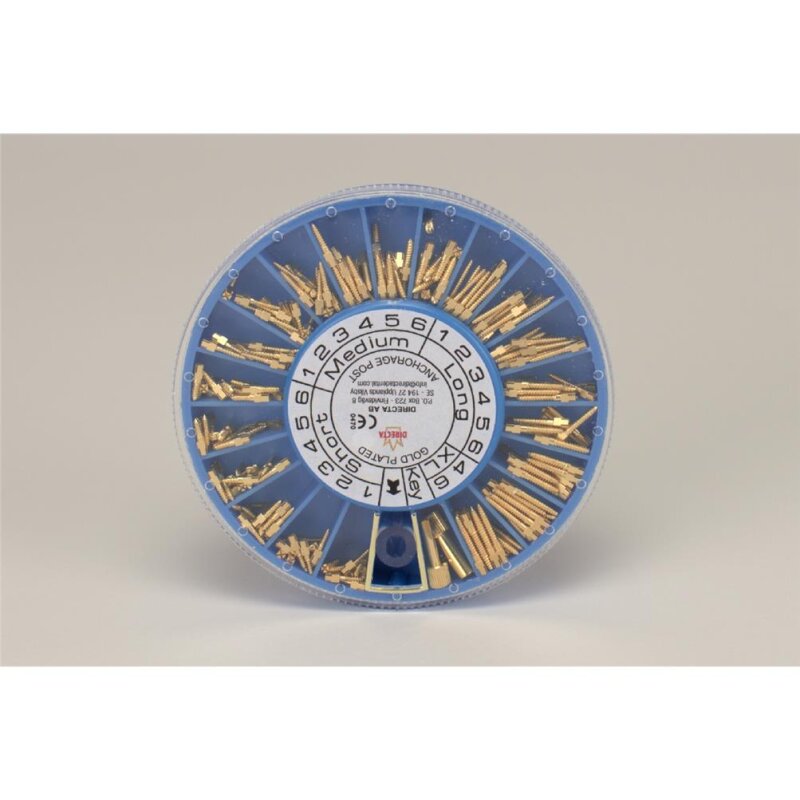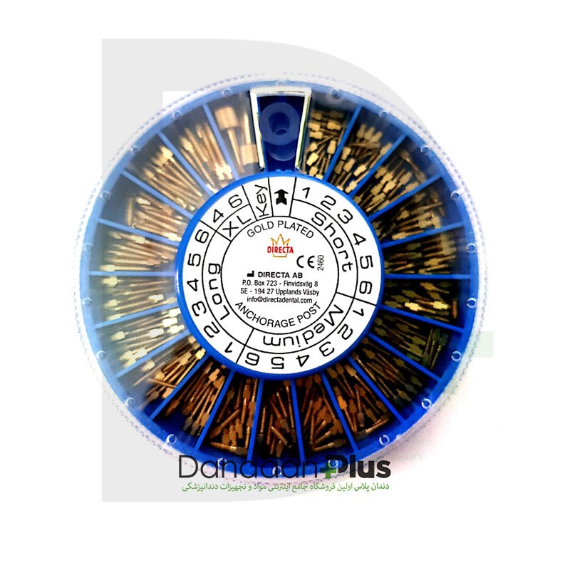 پین گلد - Anchorage Gold Plated Post:این پین پارالل است و به سبب فرم آناتومیکی که دارد باعث ایجاد گیر مناسب در ریشه دندان میشود. از سایر ویژگیهای حائز اهمیت این پین میتوان به کنارههای موازی آن در قسمت میانی و نوک مخروطی اشاره کرد.پین گلد (Anchorage Gold Plated Post) از برند سوئدی Direct و جنس برنج با سایزبندی Short، Medium، Long، XLong در بستههای 12 عددی در فروشگاه اینترنتی دندانت عرضه میشود.
