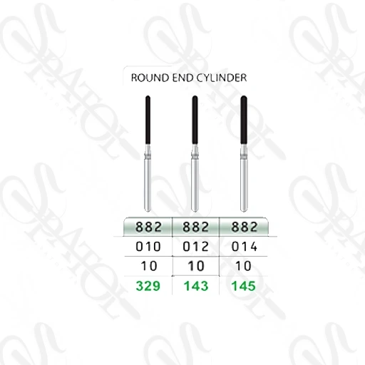 توضیحاتفرز الماسی توربین تراش 10 میل ROUND END CYLINDER 882 تیزکاوان TEESKAVANبرای تراش با فینیش لاین چمفر هنگام تهیه روکش های فول متال یا متال سرامیک (PFM) کاربرد دارد.با قدرت سایندگی مختلف از خشن (Coarse) تا بسیار نرم(Superfine).درجه سایندگی با نوارهای رنگی روی بدنه فلزی را با استفاده از حروف اختصاری بعد از شماره فرز الماسی مشخص میشود.فرز های بسیار نرم برای اتمام ترمیم استفاده میشود.در سایز و طرح های مختلف در دسترس است.خرید فقط در بسته بندی های 4 عددی میباشد