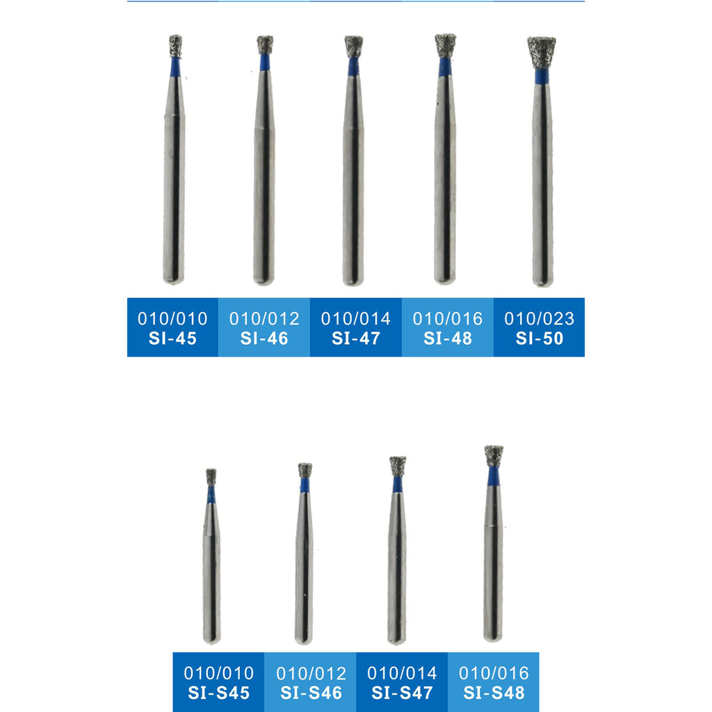 فرز الماسی مدل مخروطی معکوس فرم 010 - Inverted Conical Dental Diamond Bur 805:در خالی نمودن پرکردگی های قدیمی و در آماده سازی حفره های دسترسی درمان ریشه و تراش دندان ها برای روکش مورد استفاده است.از دیگر ویژگی های این محصول آماده سازی اکلوزال(سطح جونده دندان)است.فرز الماسی شماره 805 با فرم 010از برند DFS ساخت آلماندر رنگ سبز و سایزهای010، 012، 014، 016، 018 در بسته بندی 5 عددی عرضه می گردد.