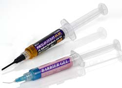 توضیحاتاسید اچ پرسلن بیسکو Bisco Porcelain Etchant:اسید اچ پرسلن بیسکو Bisco حاوی اسید هیدروفلوریک 9.5 درصد و یا 4 درصد است. که تا اطلاع ثانوی فقط غلظت 9.5 درصد عرضه میشود. و بصورت ژل است. و کار کردن با آن خیلی راحت است.اسید هیدروفلوریک بر چه موادی اثر دارد:اسید هیدروفلوریک جهت اچ کردن پرسلن های فلدسپاتیک و لیتیم دی سیلیکات ها بکار می رود. و نباید از آن برای اچ کردن فلز یا دندان استفاده شود. اثر اصلی HF بر سیلیکای کریستال های اطراف شبکه ماده است.کاربرد ها:اچ کردن لمینیت پرسلنیاچ کردن روکش های Emaxترمیم پریدگی پرسلنزمان اچینگ با اسید اچ پرسلن بیسکو:برای زمان نمیتوان فرمول دقیقی ارائه کرد. بهترین کار مراجعه به کاتالوگ سوبسترای مورد نظر است. ولی زمان حدودی برای اچ کردن پرسلن فلدسپاتیک با غلظت 9 درصد حدود 90 ثانیه و پرسلن های لیتیم دی سیلیکات 40 ثانیه است. ولی بهترین کار مراجعه به سایت سازنده پرسلن است.این ماده هم بر معده بیمار اثر سوء می گذارد و هم ممکن است بر قلب بیمار اثر سوء بگذارد و موجب آریتمی شود.تمیز کردن کامل از سطح رستوریشن:بهتر است پس از اچ کردن سطح رستوریشن و شستشو با آب از اسید اچ معمولی (اسید فسفریک) استفاده شود. چرا؟زیرا اسید فسفریک نمک های باقیمانده و رسوب کرده و به جا مانده از اسید هیدروفلوریک بر سطح رستوریشن را در خورد حل می کند.این نمک ها در صورت شسته نشدن ممکن است باعث کاهش قدرت سمان شوند.چه مدت با اسید فسفریک اچ کنیم؟ 15 ثانیه کافیست.در نهایت با آب فراوان و پوآر هوا یا تمیز کننده اولتراسونیک (گزینه ارجح) سطح رستوریش را تمیز می نماییم. میتوان از یک مسواک هم جهت اطمینان کامل از تمیز شدن سطح، استفاده کرد.اسید هیدروفلوریک 9/5%اسید هیدروفلوریک 9/5% که با افزایش سطح پرسلن سبب افزایش باندینگ بین پرسلن و سمان می شود، اثر آن مشابه سند بلاست بوده ولی تاثیر آن بیشتر و قابل کنترل است.قادر به اچ میکروسکوپی پروتز های فلدسپاتیکاستفاده از غلظت 9/5% فقط زمان اچ را کاهش می دهدبسته بندی به صورت سرنگ 5 گرمی