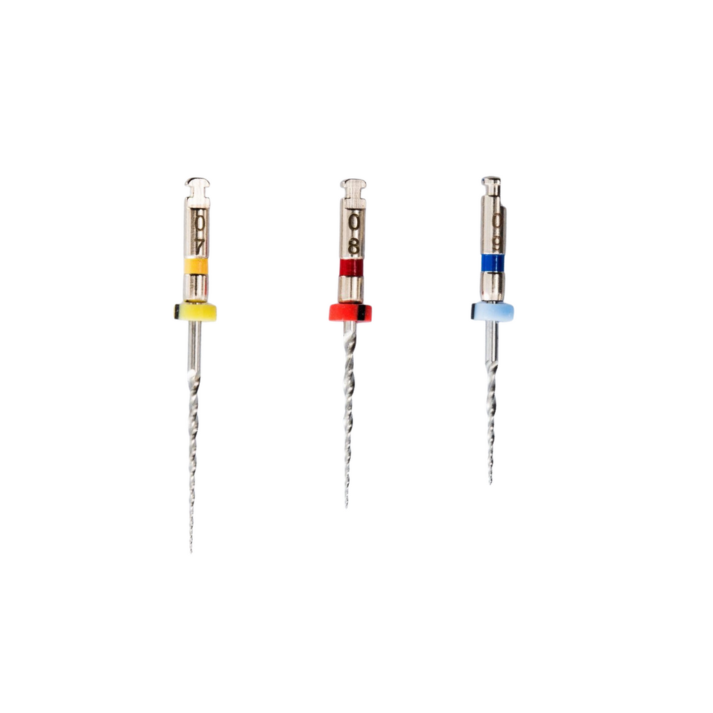 توضیحاتچرا از شنت پث فایل (Shant Path File) استفاده میکنیم؟شنت پث فایلها با طراحی منحصربهفرد خود، برای باز کردن ایمن و مؤثر کانالهای باریک و دارای انحنای زیاد به کار میروند. این فایلها در مواردی کاربرد دارند که فایلهای دستی شماره 8 و 10 یا فایلهای روتاری معمولی توانایی نفوذ ندارند.ویژگیهای شنت پث فایل (Shant Path File)افزایش تدریجی سایز نوک فایلها:نوک هر فایل بهصورت منطقی و مرحلهای بزرگتر از فایل قبلی طراحی شده و با ۲۰٪ افزایش نسبت به فایل قبل، سایزهایی مانند 10، 12، 14.5، 17.5، 21 و 25 را شامل میشود. این طراحی موجب افزایش تدریجی حجم در سایزهای پایین و افزایش سریعتر در سایزهای بالا میشود، که در نتیجه نفوذ بهتر در کانالهای باریک و انحنادار را فراهم میکند.تیپرینگ دوگانه در طول فایل:هر فایل دارای دو بخش تیپر است:۶ میلیمتر ابتدایی نزدیک به نوک با تیپر ۲٪۱۰ میلیمتر انتهایی نزدیک به دسته با تیپر ۳٪این طراحی باعث آمادهسازی بهتر قسمت اپیکال کانال و در عین حال افزایش قدرت نفوذ و کاهش احتمال خمشدگی فایل در بخش انتهایی میشود.جنس و نوع حرارتدهی:فایلهای با سایز 10، 12 و 14.5 از نوعGold Heat-Treatedهستند که به دلیل داشتن حجم فلزی کمتر، نفوذپذیری بالاتری دارند و کمتر دچار خمشدگی میشوند.فایلهای سایز 17.5، 21 و 25 از نوعBlue Heat-Treatedهستند که با داشتن فلز بیشتر، انعطافپذیری بهتری داشته و در مسیر کانال منحرف نمیشوند.مقطع مربعی و نوک غیر برنده:شکل مقطع مربعی باعث استحکام بیشتر فایلها میشود و نوک غیر برنده آنها از بروز خطراتی چون ترانسپورت و ایجاد لج در کانال جلوگیری میکند.مجهز به پرکهای SMD (Safety Memory Disk):این ویژگی باعث ثبت خستگی فلز در طول استفاده شده و از شکست احتمالی فایل جلوگیری میکند.کدگذاری رنگی دقیق:سایز نوک هر فایل علاوه بر نوشته روی دسته، با رنگبندی دقیق در دسته و رابر استاپ مشخص شده است که تشخیص سایز را برای دندانپزشک آسان میسازد.شنت پث فایلها ابزارهایی دقیق، ایمن و حرفهای هستند که برای موفقیت در درمانهای اندو در شرایط پیچیده کانال، انتخابی ایدهآل به شمار میآیند.سایز فایل روتاری25101214.517.521