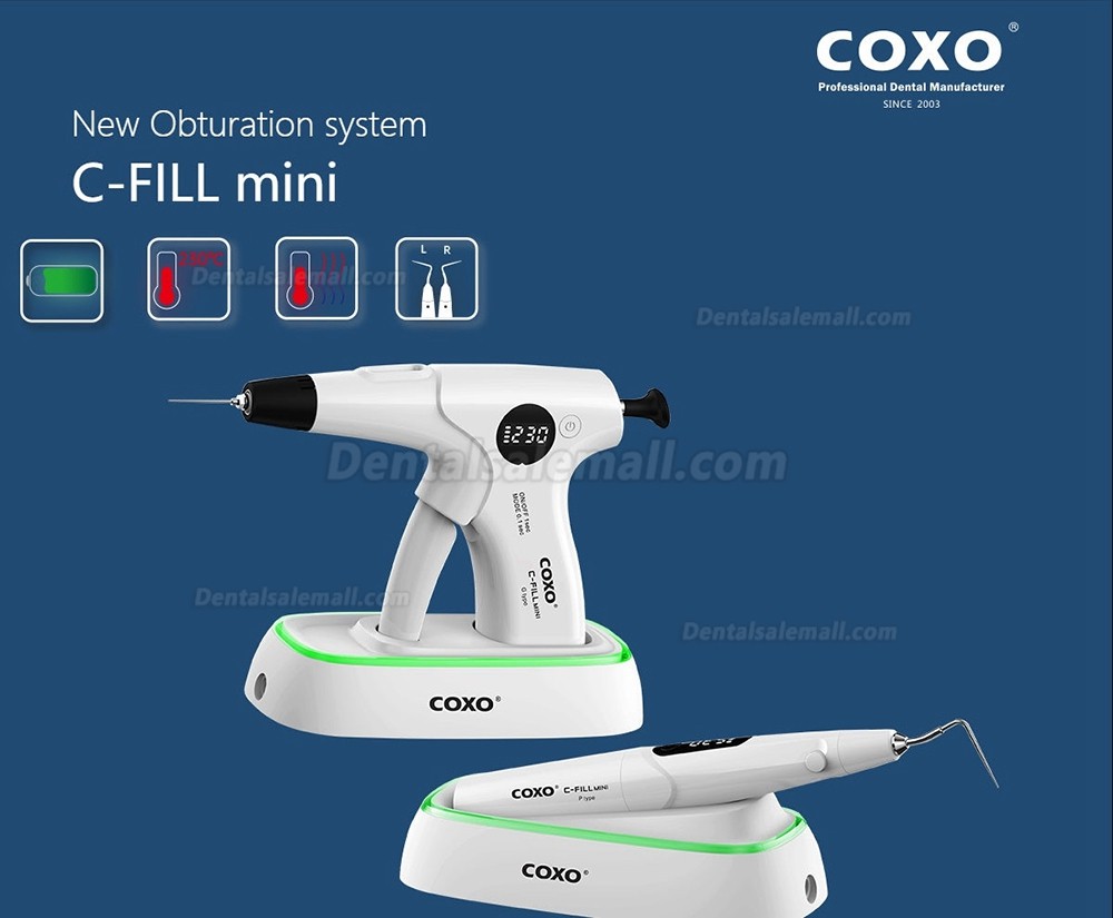 توضیحاتسیستم آبچوریشن کوکسو COXO ورتیکالی مدل C-Fill Miniسیستم آبچوریشن Vertical،COXO مدل C-Fill Mini شامل دو دستگاه در یک پک می باشد.C-Fill Mini Fill typeجهت پرکردن کانال به وسیله گوتا باردارای ۴ عدد سری خم شوندهدارای آچار مخصوص خم کردندارای ۴ درجه حرارتی : ۱۵۰ / ۱۸۰ / ۲۰۰/ ۲۳۰ درجه سانتی گراددارای صفحه نمایشگر در هر دو سمت دستگاه برای دندانپزشکان راست دست و چپ دستمدت زمان گرم شدن : ۱۵ ثانیه برای رسیدن دمای ۲۰۰ درجه سانتی گراددارای سیستم خنک کننده خودکار تا دمای ۱۵۰ درجه سانتی گراد با قرارگیری بر روی پایهبه همراه یک بسته گوتاباردارای میله تمیزکاریدارای دوعدد روکش سیلیکونی قابل اتوکلاوC-Fill Mini Pack typeدارای ۴ درجه حرارتی : ۱۵۰ / ۱۸۰ / ۲۰۰/ ۲۳۰ درجه سانتی گراددارای صفحه نمایشگر OLedدارای کلید Start دوطرفه راست دست و چپ دستمدت زمان گرم شدن فقط ۰.۵ ثانیه برای رسیدن به دمای ۲۰۰ درجه سانتی گراددارای ۵ عدد سری قابل اتوکلاومشخصات تیپ : F45/02, FM50/04, M55/06, ML55/08دارای مدار کنترل دماطراحی مناسب و کاربری آساندارای سیستم ذخیره انرژی