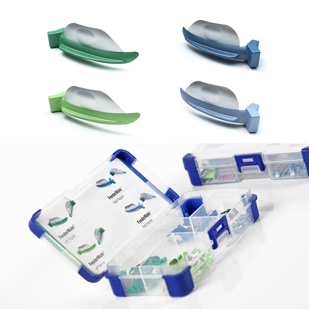 فندرمیت - FenderMate:این محصول وج پلاستیکی تاییدشده از سوی FDA (سازمان غذا و داروی ایالات متحده) باتوجه به استفاده از ماده پلیپروپین (Polypropene) است. عدم ایجاد Cervical leakage، دارای منحنیِ پیشساخته است و نیازی به خمکردن دوباره نیست. از ویژگیهای این محصول میتوان به طراحی یک تکه ماتریکس سکشنال و وج برای ترمیم های کامپوزیت از پیش تعیینشده اشاره کرد. همچنین برای پرکردن کامپوزیت کلاس II کوچک تا متوسط مناسب بوده و دارای تورفتگی کانتوردار ، به منظور شکلدهی به کانتکت پوینت (contact point) است. این فندرمیت طراحی شده برای دندانپزشکیِ کم تهاجمی با کمترین تراش وارد ناحیه بین دندانی (interproximal) است.فندرمیت (FenderMate) برند دایرکتا ساخت سوئد در دو سایز معمولی و نازک با جنس تیغه استیل ضد زنگ و بستههای 18 عددی و 100 عددی و آسورت 72 عددی در فروشگاه اینترنتی دندانت عرضه میشود.