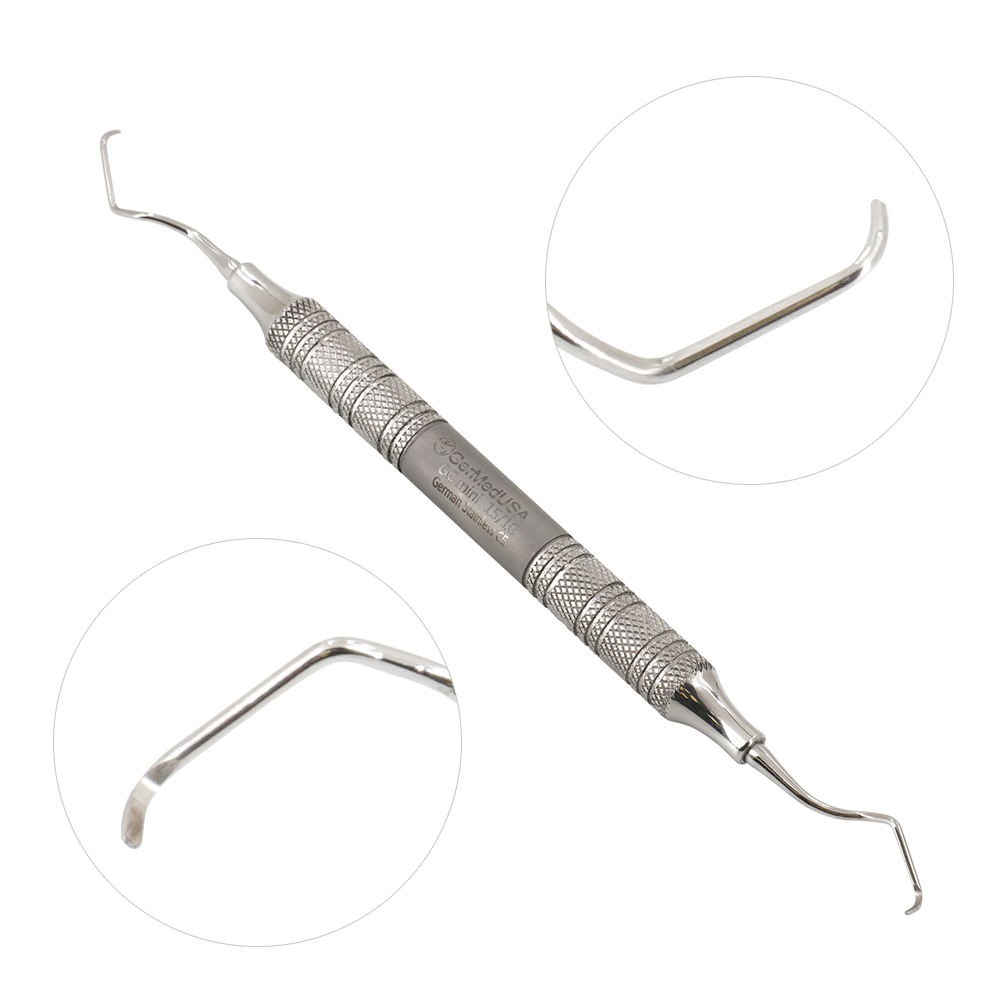 کورت گریسی - Gracey Curette:کورت یک محصول کاربردی برای برداشتن و تراشیدن اجرام و جدا کردن جرم و پلاک از سطوح دندانی است و برای اهداف مختلف مانند جرمگیری (Scaling) و تسطیح ریشه (Root-Planing) مورد استفاده قرار می گیرد.طراحی این کورت ها به گونه ای است که از آسیب به لثه جلوگیری می کند.شماره 1.2 برای جرمگیری تمام سطوح دندان های قدامی به کار می رود.شماره 5.6 برای جرمگیری تمام سطوح دندان های قدامی و پرمولر به کار می رود.شماره 11.12 برای جرمگیری سطوح مزیالی دندان های مولر به کار می رود.شماره 13.14 برای جرمگیری سطح دیستالی دندان های مولر به کار می رود.کورت گریسی برند Smart Instruدر سایزهای 1.2 ، 3.4 ، 5.6 ، 7.8 ، 9.10 ، 11.12 ، 13.14 عرضه می گردد.