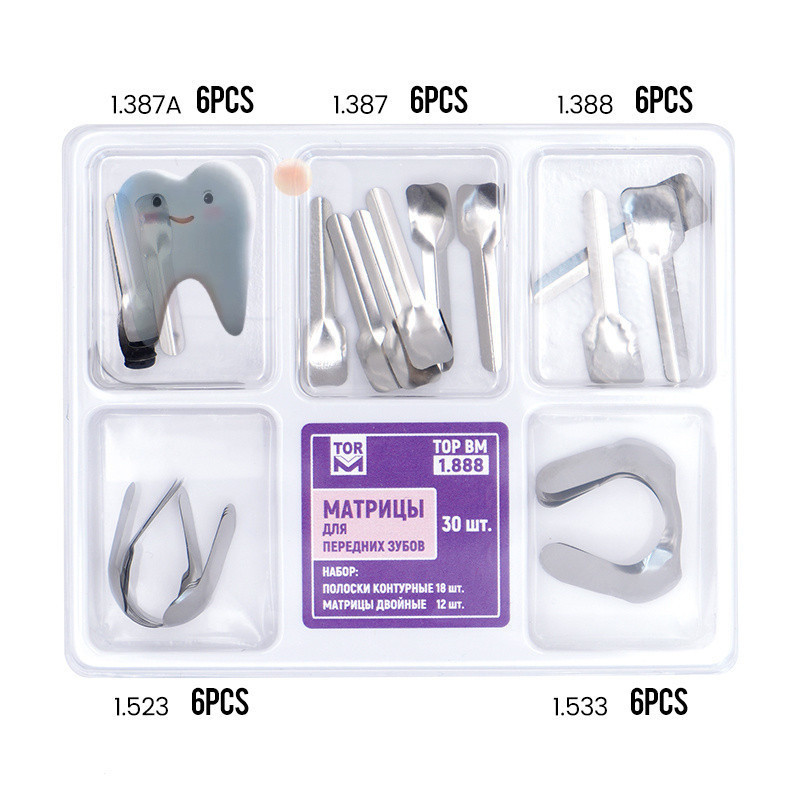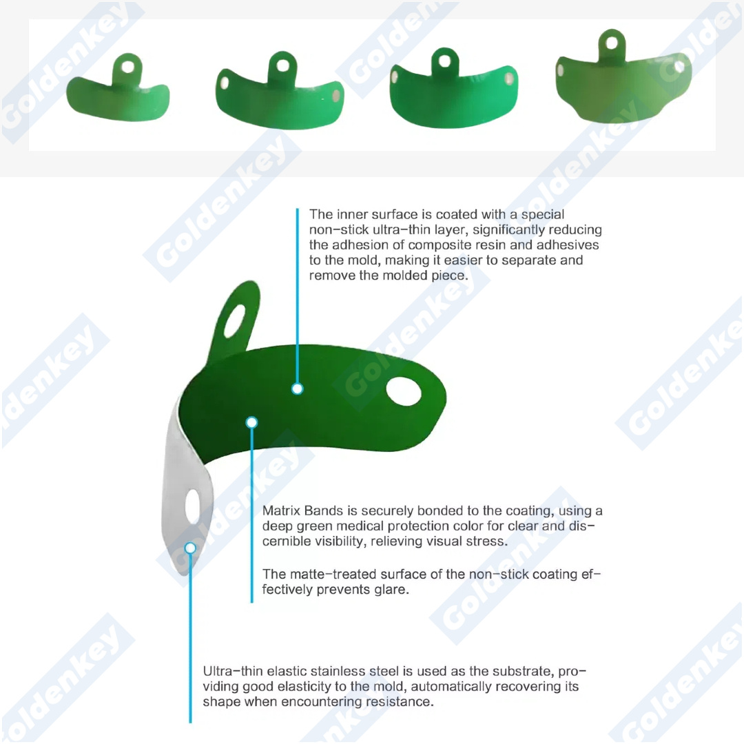 توضیحاتنوار ماتریکس سکشنال تفلون Ztسطح داخلی نوارها از لایه ایی نازک از جنس تفلون به جهت ایجاد کمترین چسبدگی کامپوزیت پوشانده شده استبرداشتن راحت نوار بدون چسبندگی در اتمام کارساخته شده از مرغوب ترین استیل ضد زنگ نازک با قابلیت برگشت پذیری و عدم آسیبسطح داخلی به رنگ سبز در امده به جهت ایجاد کنتراست بهتر در درمان و پک کردن کامپوزیتضخامت استاندارد جهت ایجاد بهترین کانتورینگ و کانتکت مناسبدر 4 سایز با ارتفاع 3.5 و4.5و5.5و6.5 جهت درمان های کلاس 2 در دندان های اطفال پرمولار مولار و مولار اکستندبسته های 50 عددیدارای FDA ,CE,CFDA