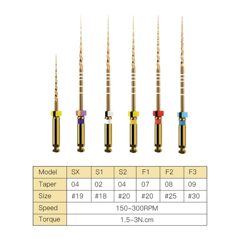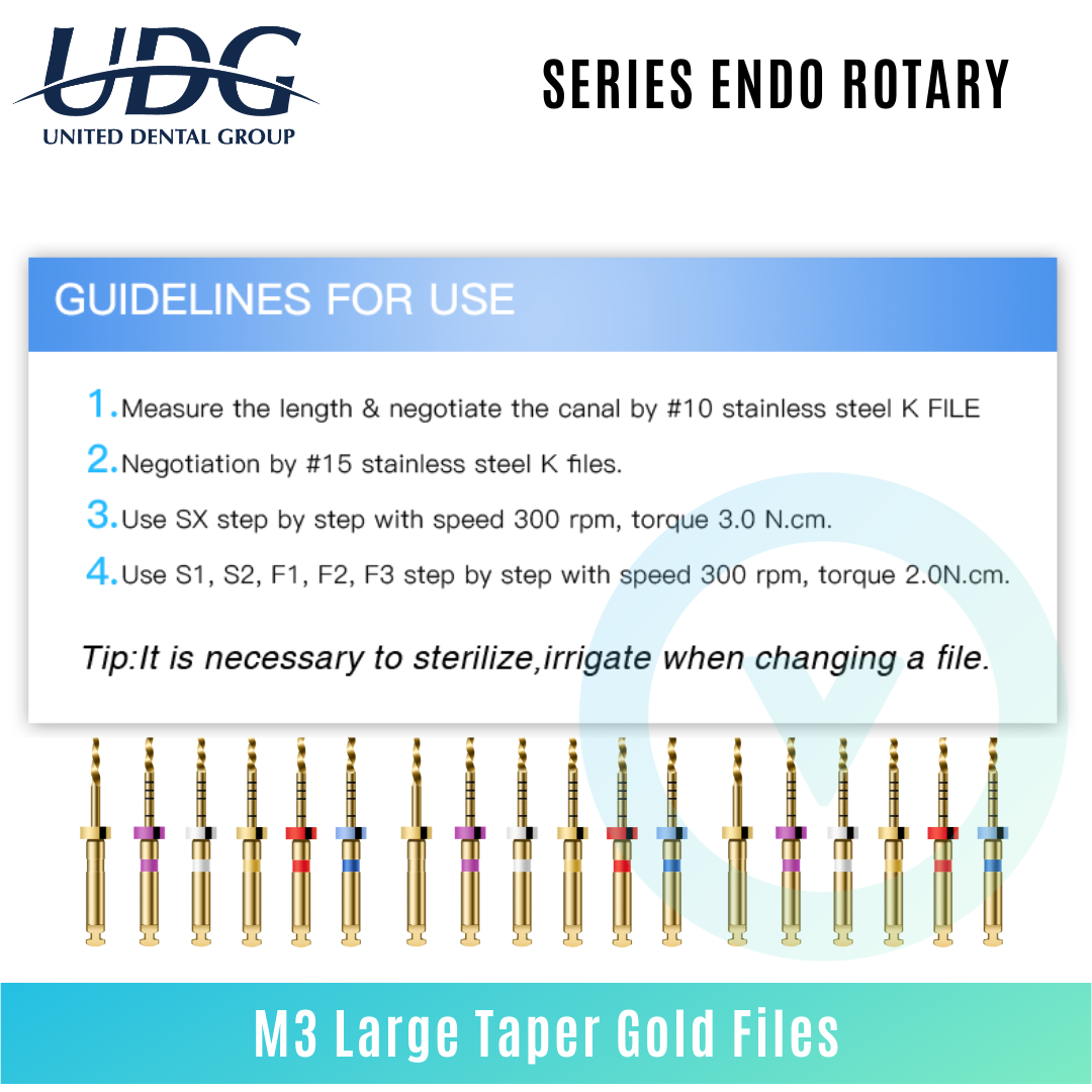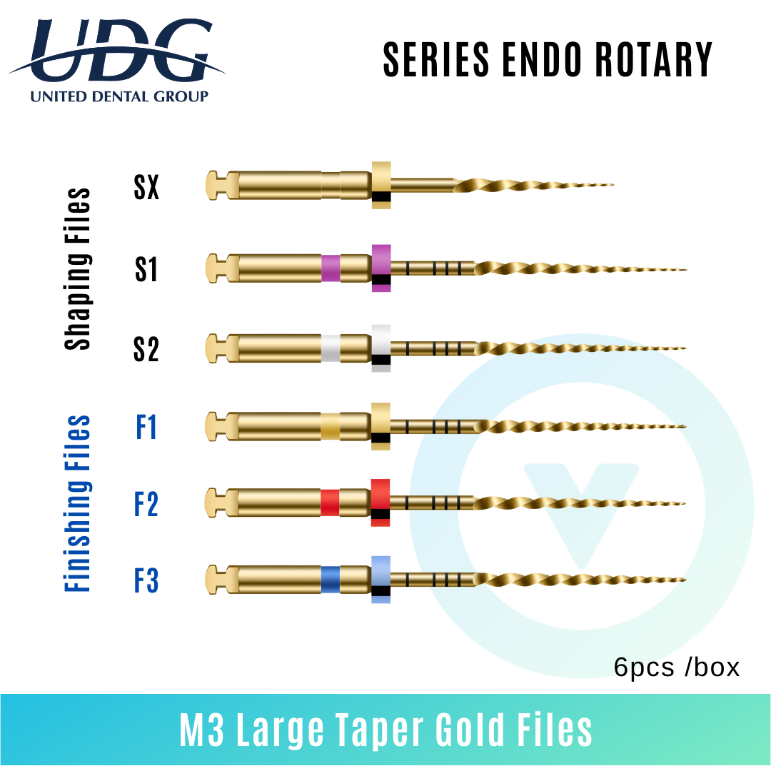 فایل روتاری طلایی پروتیپری U PLus طول 31 - U+ Gold Rotary File:فایل روتاری پروتیپری U Gold Plus ایمن، ساده و هوشمند بوده و انعطاف پذیری مطلوبی دارد بنابراین برابر شکستگی مقاوم است.مقطع فایل روتاری U Gold Plus به صورت مستطیل شکل نامتقارن طراحی شده است و سطح مقطع آن قابلیت تحمل فشار متوسط با چرخش مداوم مثبت را دارد. لازم به ذکر است که این فایل روتاری گواهینامه CE, FDA را نیز اخذ کرده است.فایل روتاری طلایی(Gold)پروتیپری مدل U PLusبا طول 31 میلیمتر دارای سایزبندی (F1 , F2 , F3 , F4 , F5 , S1 , S2 , (SX-F3 در بستهبندی 6 عددی عرضه میشود.