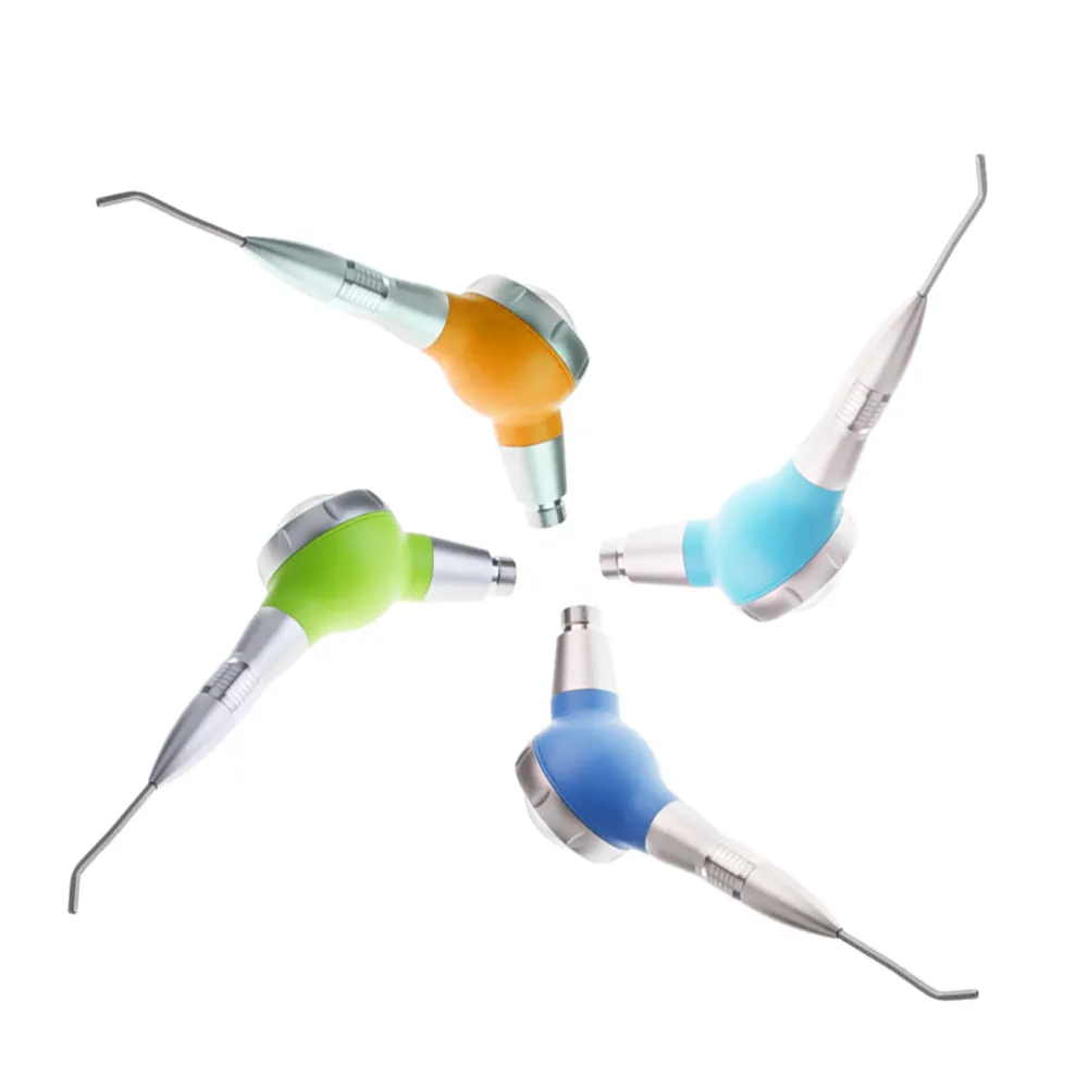 توضیحاتدستگاه ایرفلو یکی از تجهیزات دندانپزشکی است و نوعی دستگاه جرمگیری می باشد که می تواند لکه های دندانرا از بین ببرد . در این روش با استفاده از فشار آب و یا هوا ، با پرتاب پودر بر روی جرم دندان ، جرم ها از روی دندان جدامی شوند . این روش به دلیل به دلیل سرعت و کاهش حساسیت دندان ، تمیز کردن بهتر و راحتی بیمار از روش هایسنتی جرمگیری بهتر می باشد .ویژگی دستگاه ایرفلو :بهمراه درپوش یدکقطعات جانبی کاملارتباط 2 سوراخمناسب جهت تغییر رنگ دندان هایی که در جرم گیری و بورساژ معمول از بین نمی رودو برای برداشتن بیوفیلم پریودونتالتمیز کردن اطراف ایمپلنت هادرمان های نگهدارنده پس از جراحی های پریودونتالو تمیز کردن سطوح حساس دندانیضرورت انجام ایرفلوباکتری ها در اثر تجمع پلاک و رسوب در سطح دندان ها به آنها چسبیده و از ذرات باقیماندهغذایی که در دهان باقی مانده ، استفاده می کنند و به فعالیت می پردازند . در نتیجه سببتولید اسید در دهان می شوند . اسید تولید شده باعث حل کردن مینای دهان شده و سببپوسیدگی و فرسایش دندان میشود . در نتیجه جرمگیری ، رسوب سطح دندان ها و محلتجمع باکتری ها از بین می رود . یکی از بهترین روش ها برای جرم گیری و سفید کردن دندان ،روش ایرفلو می باشد که به دلیل سرعت و کاهش حساسیت دندان ، تمیز کردن بهتر و راحتیبیمار از روش های سنتی جرمگیری بهتر می باشد .روش های جرمگیری دندانبه سه صورت انجام می گیرد : ابزار دستی ، ابزارهای اولتراسونیک ، دستگاه جرمگیری ایرفلوابزار دستی که بیشتر از جنس فولاد ضد زنگ هستند که دندانپزشک با استفاده از آنها جرم هایروی دندان را بر می دارد . این ابزار در شکل های متنوعی وجود دارند .ابزارهای اولتراسونیک که دستگاهی است دارای یک سر فلزی که با ایجاد جریان مغناطیسی ، آبرا به صورت موج در می آید و به نوک قلم انتقال می یابد . و با ایجاد ضربات کوچک جرم ها را از بینمی برد .دستگاه جرمگیری ایرفلو که با استفاده از فشار آب و یا هوا ، با پرتاب پودر بر روی جرم دندان ، جرم هااز روی دندان جدا می شوند .