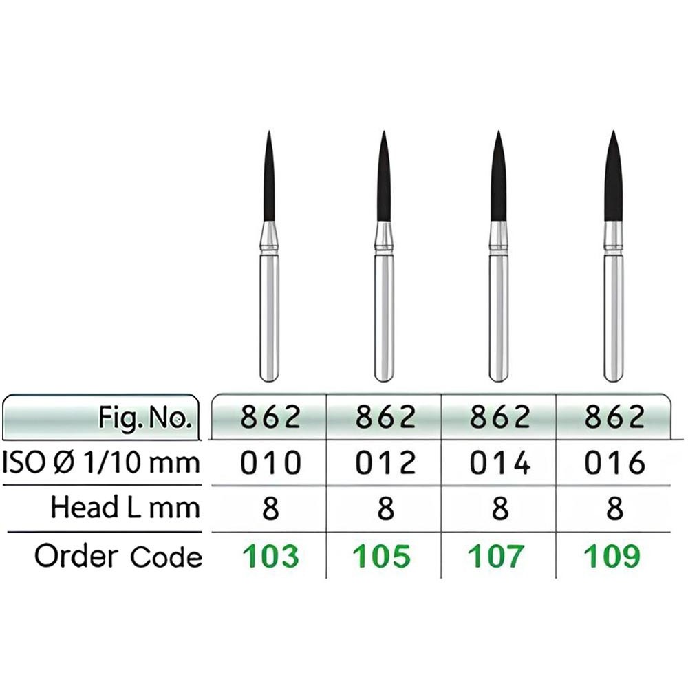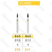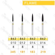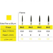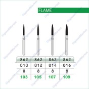 توضیحاتفرز الماسی توربین تراش 8 میل 862 FLAME تیزکاوان TEESKAVANبرای تراش با فینیش لاین چمفر هنگام تهیه روکش های فول متال یا متال سرامیک (PFM) کاربرد دارد.با قدرت سایندگی مختلف از خشن (Coarse) تا بسیار نرم(Superfine).درجه سایندگی با نوارهای رنگی روی بدنه فلزی را با استفاده از حروف اختصاری بعد از شماره فرز الماسی مشخص میشود.فرز های بسیار نرم برای اتمام ترمیم استفاده میشود.در سایز و طرح های مختلف در دسترس است.خرید فقط در بسته بندی های 4 عددی میباشد