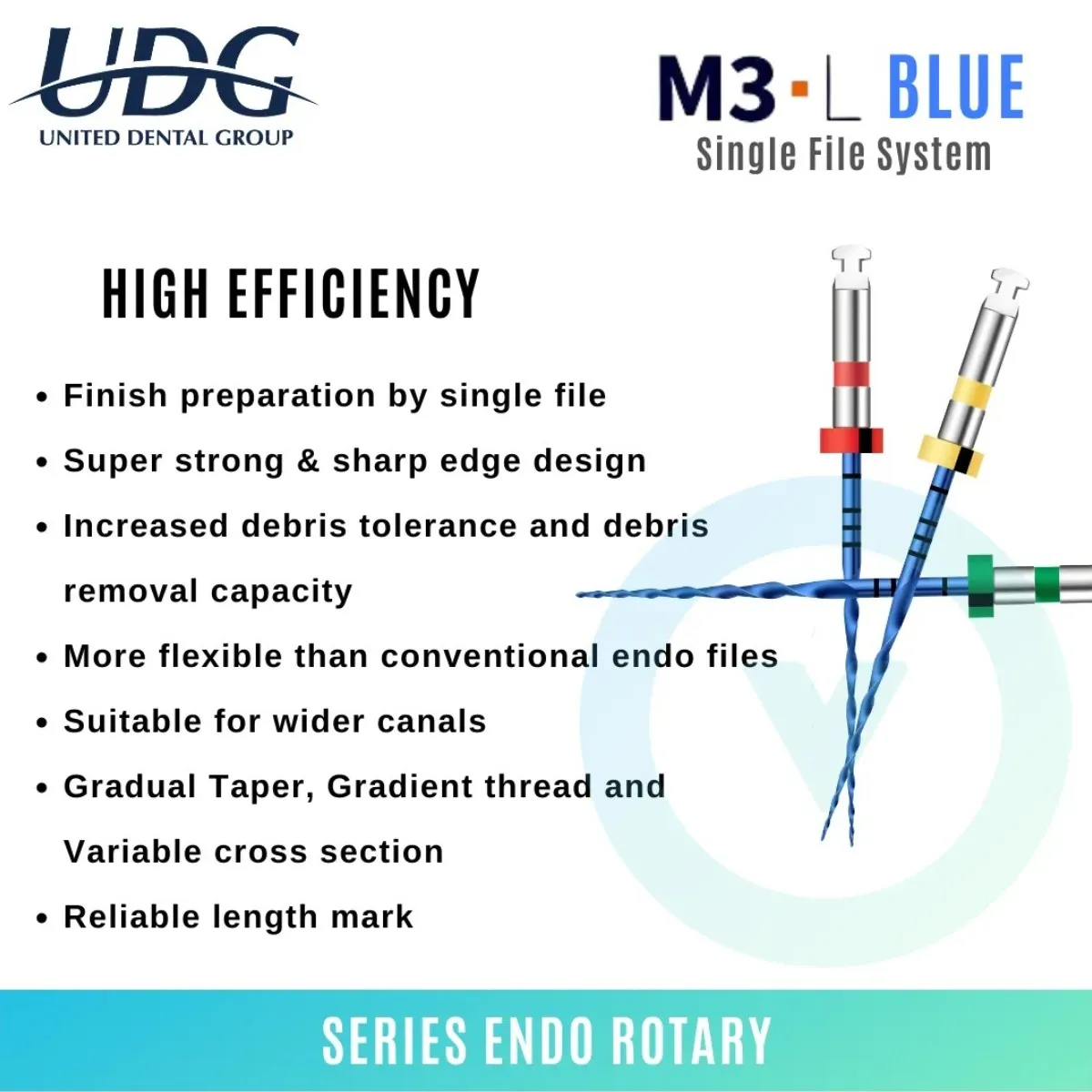 فایل روتاری پروتیپری U Blue طول 31 - Rotary File:از بهترین آلیاژ تیتانیوم ساخته شده است.این فایل بسیار انعطافپذیر میباشد و در برابر شکستگی مقامت بالایی دارد و دارای گواهینامه CE, FDA است.از ویژگیهای فایل میشود به حفظ شکل کانال، صرفهجویی در زمان، هزینه مناسب و کارایی در کانالهای کلسیمی اشاره کرد.فایل روتاری پروتیپری U Blue برند NIC در سایزهای F1 , F2 , F3 , F4 , F5 , S1 , S2 , SX-F3 با طول 31 میلیمتر عرضه میشود.