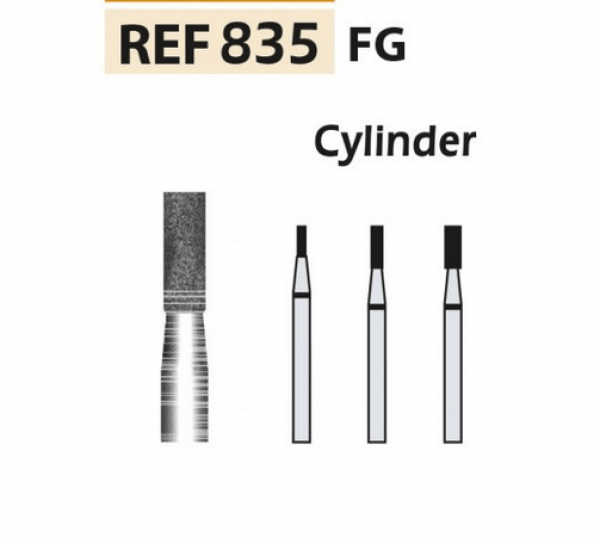 فرز الماسی مدل استوانهای ته صاف توربین - Flat End Cylinder 835:فرزهای الماسی محصولی از کمپانیلاستردنتو ساخته شده بامتریال فرانسویهستند. فرز 835در ایجاد فضاهای موازی ،صاف و 90 درجه و همچنیندر آماده سازی کست طلا ، تاج دندان و Inlay/Onlay کاربرد دارد. از دیگر ویژگیهای این فرز میتوان به خالی کردن پرکردگیهای طلایی اشاره کرد.فرز کد 835 با شکل استوانهای ته صاف توربین در قطرهای 006C, 008C,009C,010C,012C,014C,016C در بستههای 5 عددی در فروشگاه اینترنتی دندانت عرضه میشوند.