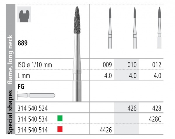 فرز الماسی تراش مخصوص توربین فرم 540 - Dental Diamond Burs 889:این فرزها محصولی از کمپانی DFS هستند در خالی کردن پرکردگیهای قدیمی مورد استفاده قرار میگیرد. همچنین در آماده سازی کانال ، تاج دندان و Inlay/Onlay کاربرد دارد.فرز الماسی مدل سوزنی مخصوص توربین ساخت کمپانیDFSبا قطرهای 009 و 010در بستههای 5 عددی در فروشگاه اینترنتی دندانت عرضه میشود.