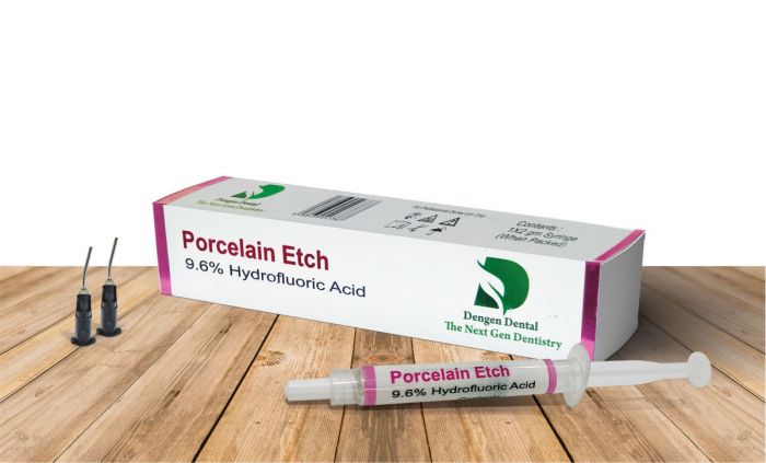 پرسلن اچ - Porcelain Etch:پرسلن اچ لوتوس حاوی اسید هیدروفلوئوریک 9.6% بافر شده که به صورت ژل تیکسوتروپیک فرموله شده و امکان بهکار گیری دقیق در محل مورد نظر را فراهم میکند. این محصول در کلیه رستوریشنهایی که باندینگ رزین وکامپوزیت به پرسلن مورد نظر باشد مورد استفاده قرار میگیرد.ژل اچ پرسلن محصولی از برند لوتوس است که به صورت 1 عدد سرنگ 3 میلیلیتری در فروشگاه اینترنتی دندانت عرضه میگردد.****بهترین برندهایپرسلن اچرا از فروشگاه اینترنتی دندانت تهیه کنید********خرید بهترینمواد ترمیمیاز فروشگاه اینترنتی دندانت****