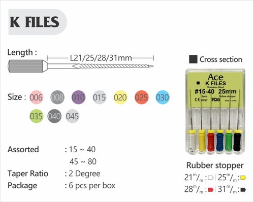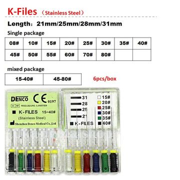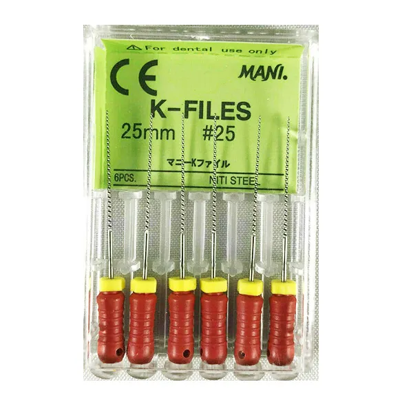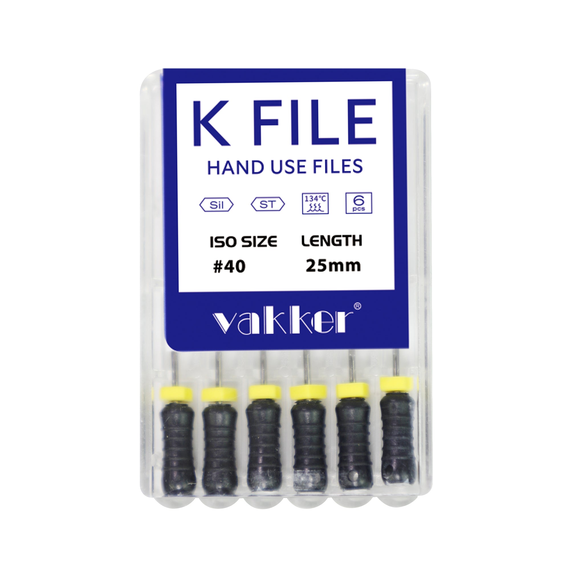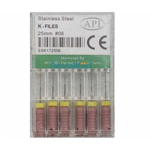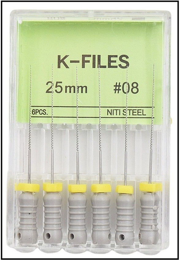 K فایل طول 25 - KFile:جزء پر مصرفترین فایلهای دستی برای درمان اندو میباشد.K فایل نسبت به H فایل از مقاومت بیشتری برخوردار است.مفتول پیچ خورده از جنس استیل ضدزنگ یا نیکل تیتانیوم است که دارای سطح مقطع متقارن مربعی و مثلثی شکل میباشد.K فایل طول 25برند دنکوبا جنس استیل ضد زنگ و سایزبندی 6, 8 , 10 , 15 , 20 , 25 ، 30 , 35 , 40 , 45، 50، 55، 40-15, 80-45 در بستهبندی 6 عددی عرضه میگردد.***** برای خریدفایل دستی دندانپزشکیبا بهترین قیمت کلیک کنید ******** خرید بهترینابزار دندانپزشکیبا کیفیتی تضمینی تنها در دندانت ****