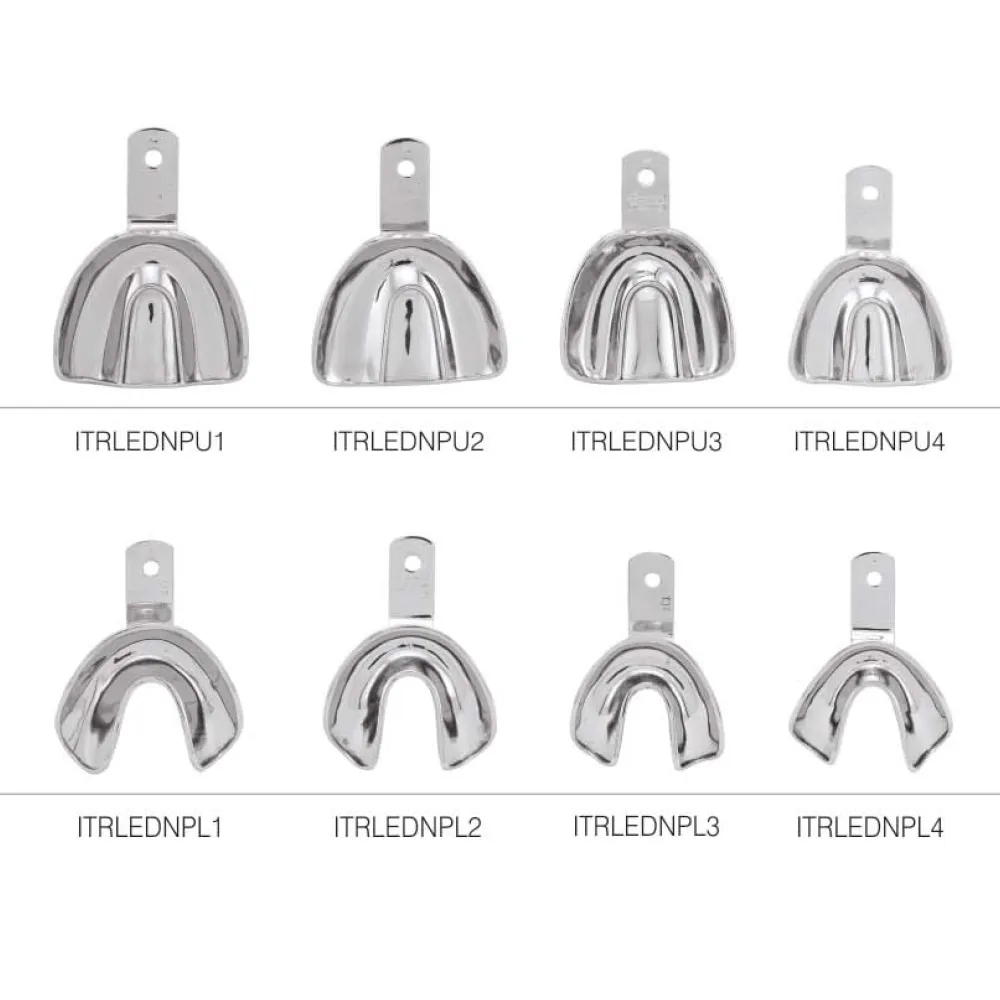 تری بی دندانی 8 عددی - Edentulous Tray:قالبگیری در دندانپزشکی به منظور ایجاد یک مدل برای تشخیص شرایط دهان بیمار، ساختن یک تری اختصاصی، کراون موقت و یا برای تکنسینهای لابراتوار به منظور ساختن یک کست از فک بیمار گرفته میشود.بدون لغزش و بدون لبه میباشد و قابل استفاده برای قالبگیری از محیط دهان و دندان است و از بهترین مواد اولیه تهیه شده است.تری بی دندانیبرند سامان دندان (سام)در بسته بندی 8 عددی به صورت آسورت (4 عدد برای فک بالا و 4 عدد برای فک پایین) عرضه می گردد.