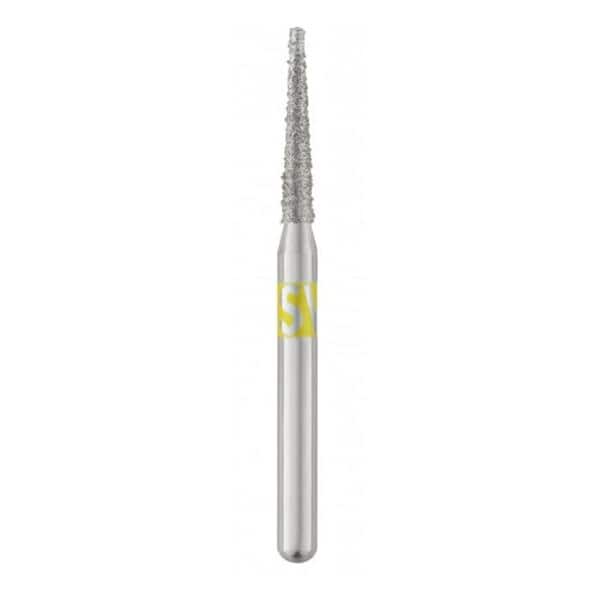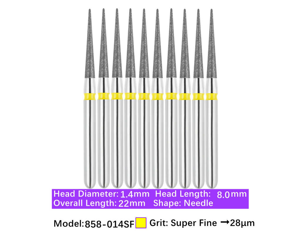 فرز الماسی مدل سوزنی توربین - Needle Dental Diamond Bur 858:این فرز برای ایجاد تغییرات ظریف در شکل و کانتور دندانها پیش از قرار دادن ونیرها یا روکشها استفاده میشود. از طرفی به دلیل سر ظریف و نوک تیزی که دارد تنها در موارد ظریفی که به دقت بالایی نیاز دارند کاربرد دارد مانند برداشت دقیق و کنترل شده مواد ترمیمی همانند کامپوزیت یا آمالگام از نواحی بین دندانی یا نزدیک لثه، همچنین از آن برای برداشت پوسیدگیهای سطحی و کوچک بدون آسیب به بافت سالم دندان استفاده میشود.لازم به ذکر است که درجه زبری فرزها ناشی از اندازه ذرات الماسهای تعبیه شده روی سطح آنهاست. هر چه این ذرات درشتتر باشند فرز زبرتر خواهد بود و تراش دندان سریعتر صورت گرفته و دندان نیز بعد از تراش خوردن زبرتر است.بر طبق استاندارد ایزو، فرزها بر اساس اندازه ذرات الماس به 6 دسته طبقهبندی میشوند که تنها به 4 رنگ پرطرفدار میپردازیم با رنگ حلقه درج شده روی بدنه فرز مشخص میشوند. فرزها با حلقه مشکی رنگ از همه زبرتر هستند و اندازه ذرات الماس فرزهای آنها از 150 تا 180 میکرومتر است، این عدد برای فرزهای سبز (زبر) 120 تا 150 میکرومتر، برای فرزهای آبی (استاندارد) 90 تا 105 میکرومتر، و برای فرزهای زرد (بسیار نرم) 25 تا 30 میکرومتر است.فرز الماسی مدل سوزنی (Needle) با کد 858 از برند الماس تِک در رنگهای سبز و زرد و قطرهای متنوع در فروشگاه اینترنتی دندانت عرضه میشود.****خرید انواعفرز مخصوص توربیندر فروشگاه اینترنتیدندانت********خریدفرزتوربین و آنگل از بهترین برندها از وبسایت دندانت****