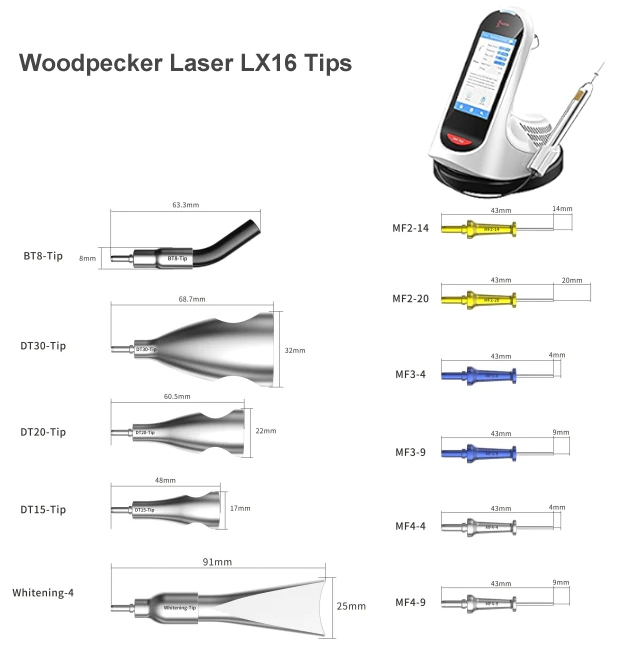? دستگاه لیزر مدل LX16 PLUS? لیزر دیود همراه با طول موج آبیساخت کمپانی Woodpecker ??✨ دارای سه طول موج متفاوت ۴۵۰ ، ۶۵۰ و ۹۷۶ نانومتر? کاربرد در لیزر درمانی ، بهبود زخم دهان، سفید کردن دندان ، جراحی بافت نرم دندان? طول موج ۴۵۰ نانومتری برای برش بافت نرم ، فرسایش، انعقاد و برش ایده آل است.? از طول موج ۶۵۰ نانومتری برای اثرات لیزر درمانی سطح پایین استفاده می شود همچنین از آن می توان به عنوان اثر فوتوبیومدولاسیون(PBM) که به بهبود زخم و تجمع بیولوژیکی جراحی دندان استفاده کرد.? طول موج ۹۷۶ نانومتری یک لیزر سنتی مادون قرمز شناخته می شود. به دلیل طول موج بالا و نفوذ عمیق، برای کاهش باکتری ها در بیماری های پریو دنتال و بیماری های اندودنتیک استفاده می شود.? دارای ۲۵ برنامه ی درمانی از پیش تنظیم شده (Preset)⚡ دارای ۱۵ عدد فیبر نوری در ۵ سایز و شکل مختلف⚡ دارای تیپ های مخصوص برای TMJ تراپی⚡ قابلیت برای یک هفته کار درمانی⚡ هندپیس قابل اتوکلاو⚡ دارای سه عدد عینک محافظ برای دندانپزشک، بیمار و دستیار⚡ ابعاد : ۲۳*۲۰*۲۲ سانتی متر است⚡ سبک و قابل حمل(وزن تقریبی ۱/۵ کیلوگرماشتراک گذاری