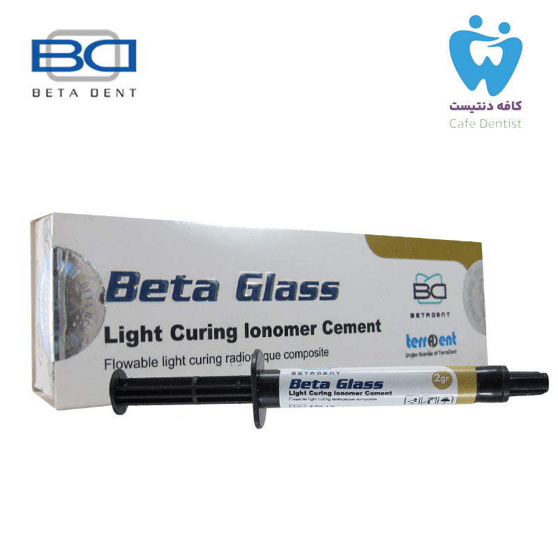 گلاس آینومر لایت کیور بتا گلس - Light Cure Glass Ionomer:این محصول سمان گلس آینومر لایت کیور ، ماده محافظ و پر کننده حفره دندان است کهبرای ترمیم مستقیم آسیبهای جزئی، به عنوان لاینر جهت کفبندی در زیر انواع مواد پر کننده و به عنوان فیشور سیلانت مورد استفاده قرار میگیرد. همچنین باندینگ فوقالعاده قوی با مینا و عاج (اتصال شیمیایی محکم) برقرار کرده، حاوی فلوراید جهت جلوگیری از پوسیدگیهای ثانویه است و کاربردی آسان و تزریق به محل دارد.گلاس آینومر لایت کیور بتا گلس در بستههای حاوی یک سرنگ 2 گرمی در فروشگاه اینترنتی دندانت عرضه میشود.****خریدگلاس آینومربا بهترین قیمت در فروشگاه اینترنتیدندانت********متنوعترینمواد ترمیمیدر وبسایت دندانت****