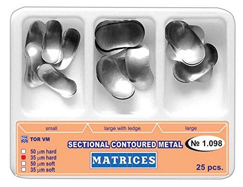 توضیحاتیکی از مهمترین ابزارهای دندان پزشکی که در روند ترمیم دندانها کاربرد زیادی دارد، نوار ماتریس است. با کمک ماتریس، مواد ترمیمی فشرده و متراکم میشوند و به این ترتیب، به پروسه ترمیم سرعت میبخشد.کیت ماتریس منحنی، شامل 5 حالت مختلف ماتریس برای پری مولار میباشد. این کیت از هر حالت ماتریس 6 عدد موجود دارد. سایز ماتریسهای این کیت هر کدام 55 میکرونی است.محتویات کیت ماتریس منحنی مولار:ماتریس منحنی بدون لج (6 عدد)ماتریس منحنی دو طرفه (6 عدد)ماتریس منحنی لج سمت چپ (6 عدد)ماتریس منحنی لج سمت راست (6 عدد)ماتریس منحنی لج مرکزی ( 6 عدد)• shape 1 (without ledge)6 pcs.• shape 2 (bilateral)6 pcs.• shape 3 (left ledge)6 pcs.• shape 4 (right ledge)6 pcs.• shape 5 (central ledge)6 pcs.