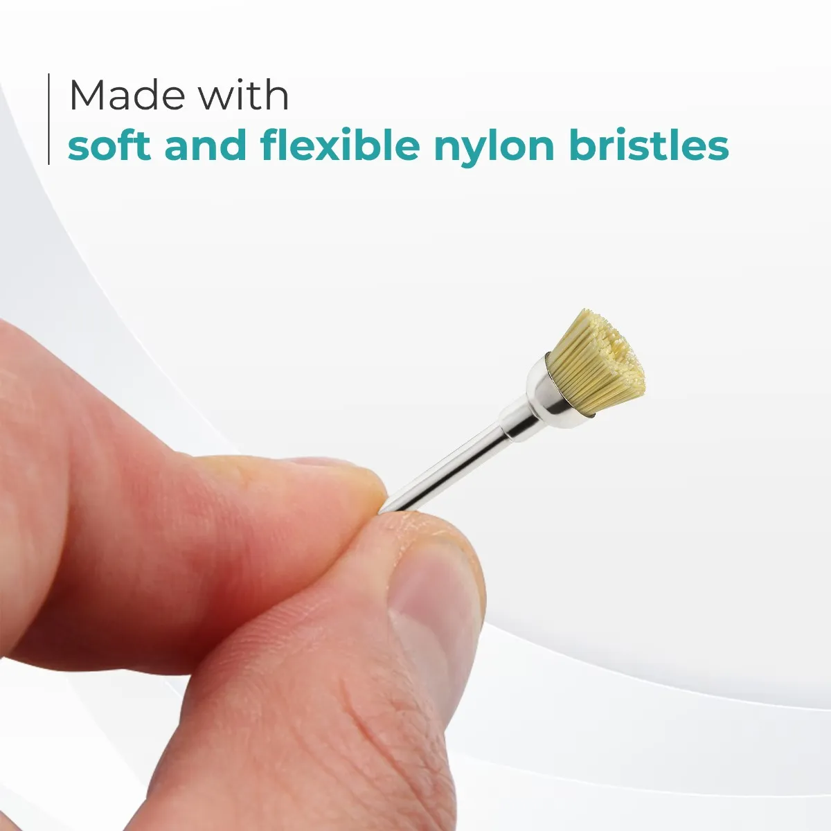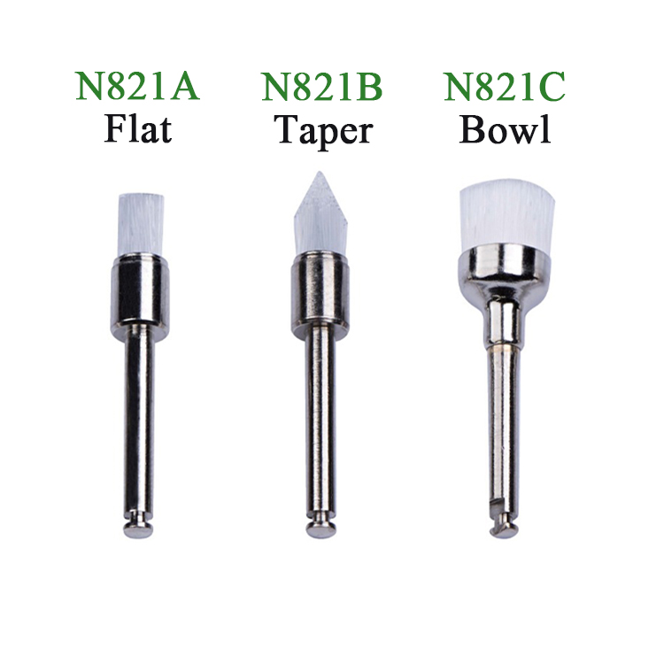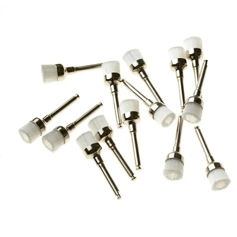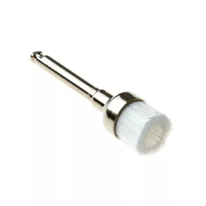 برس برساژ تک عددی - Prophy Brush:از رشته های نایلونی با کیفیت ایده آل به منظور از بین پردن پلاک ها از جمله پلاک چای ، قهوه و سیگار ساخته شده است.برای پولیش و تمیز کردن دندان های طبیعی ، طلا و آمالگام ایده آل است.پایه فلزی و سری انعطاف پذیر دارد.به همراه آنگل قابل استفاده است.برس برساژ تک عددی برند MicroDontدر دو شکل فنجانی توپر(کاپ) ، مخروطی (کونیکال) و دو رنگ سفید ، مشکی و با جنس نایلونی و قطر 5 میلی متر عرضه می گردد.