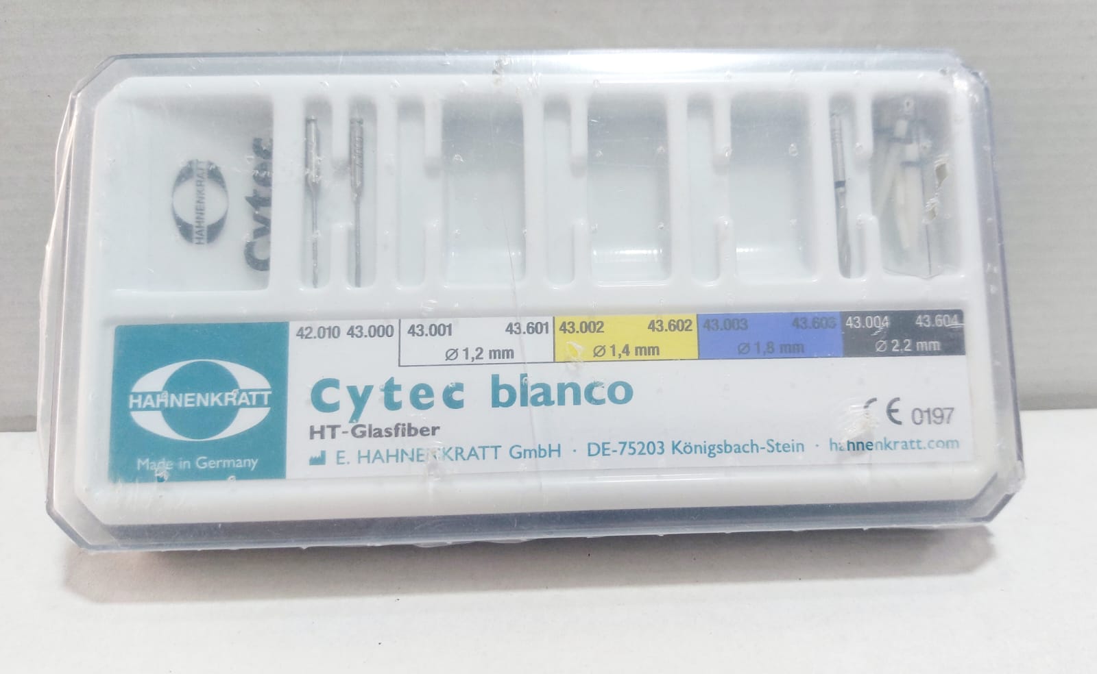 کیت پست فایبرگلاس سایتک مدل تست - Cytec HT Glass Fiber Test Set:کیت سایتک برای ریشههایی طراحی شده که بیشتر شکل استوانهای دارند.شرکت HAHNENKRATT GmbH اولین بار در آلمان در سال 1995 پست از فیبر کربن را معرفی کرد. این محصول در سال 1998 با جنس فیبر کوارتز به بازار عرضه شد. کمپانی هانینکرات آلمان در نمایشگاه IDS 2001، سیستم جدید فایبرپستهای مدل سایتک را با جنسفیبر کربن HT یا فیبر شیشهای HTمعرفی کرد.در واقع کمپانی هانینکرات آلمانبه دلیل کاهش تقاضا برای پستهای فیبر کربندر سالهای اخیر و به خاطردلایل زیباییشناسی، دیگر پستهای سایتک و کانتک را ازفیبر کربنارائه نمیدهد و فقطپستهای فیبر شیشهایعرضه میکند. این پستهای سفید و نیمهشفاف ازفیبر شیشهای HT، به دندانپزشکان امکان ایجاد ترمیمهایی زیبا و طبیعیتری را فراهم آورده است.کیت پست فایبر گلاس سایتک مدل تست از برند هانینکرات آلمان دربستههای حاوی دریل (3 نوع دریل) و پست (یک نوع پست) از جنس شیشه HTدر فروشگاه اینترنتی دندانت عرضه میشود.اما شیشه HT چیست و چه مزیتی دارد؟در اصطلاح HT مخفف کلمه High-Tensile است که به معنی استحکام کششی بالا است. این ویژگی به مواد یا فیبرهایی اطلاق میشود که توانایی تحمل فشار و کشش زیادی را دارند بدون اینکه شکسته شوند یا تغییر شکل دهند.