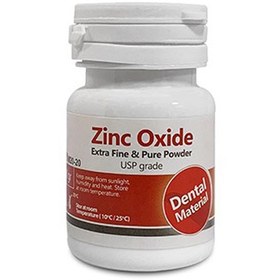 توضیحاتزینک اکساید برای تهیه خمیر عمدتا با اژنول توصیه می شود.به عنوان ماده ای برای پر کردن موقت، ماده ای برای پوشش شکاف ها، برای سمان کاری موقت یا دائمی، برای پرکننده های کانال ریشه یا به عنوان سمان جراحی استفاده می شود.این محصول کمی خواص ضد باکتری دارد و ترمیم زخم ها را بهبود می بخشد.ترکیبات:پودر فوق خالص زینک اکسایدروش استفاده:با اژنول مخلوط کنید تا خمیر غلیظی تشکیل شود و در حفره دندان جهت از بین بردن درد دندان به عنوان پانسمان روی دندان قرار دهید یا به عنوان پوشش زیر ترمیم رزین غیر کامپوزیت استفاده شود.شرایط نگهداری:در دمای بین 10 تا 24 درجه سانتیگراد نگهداری شود. پس از استفاده درپوش را به دقت ببندید.دور از رطوبت نگهداری شود. اگر در جای خشک و خنک نگهداری شود، پس از باز کردن، برروی ماندگاری تأثیری نخواهد داشت.زمان ماندگاری: 3 سال از تاریخ تولید.
