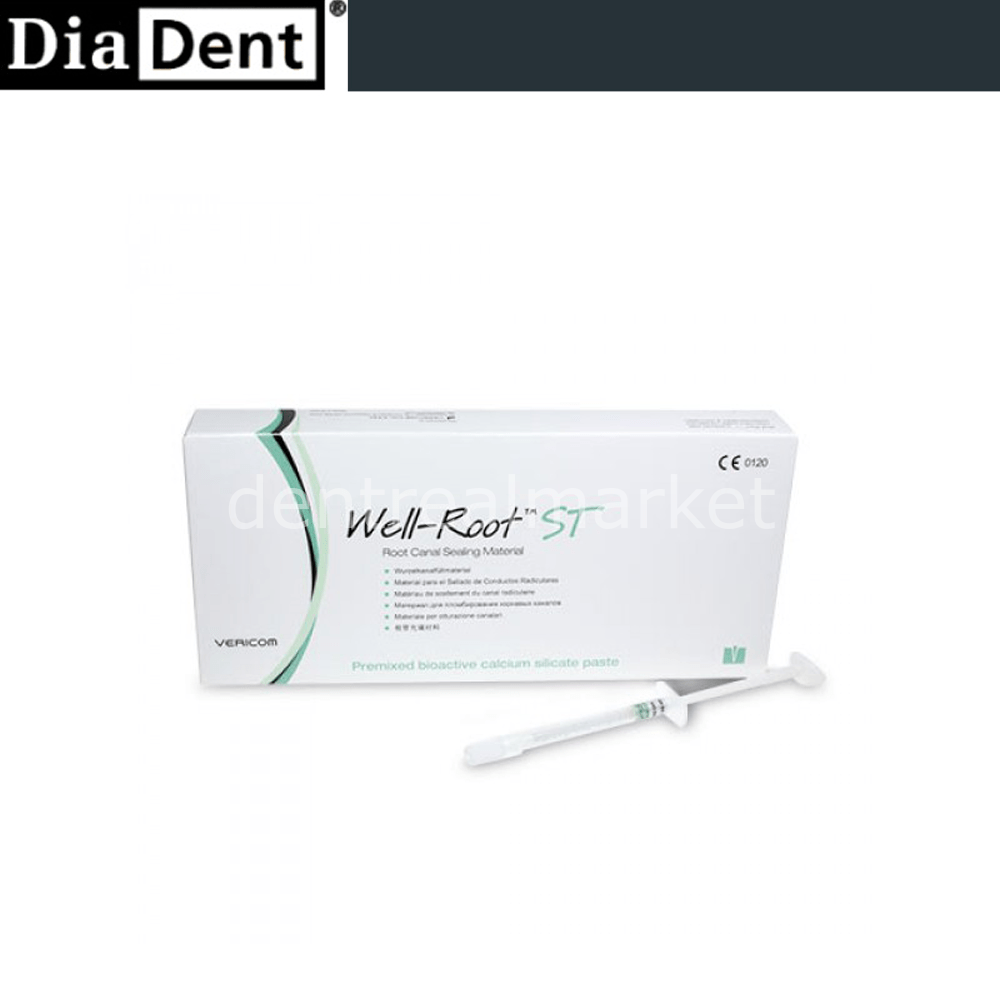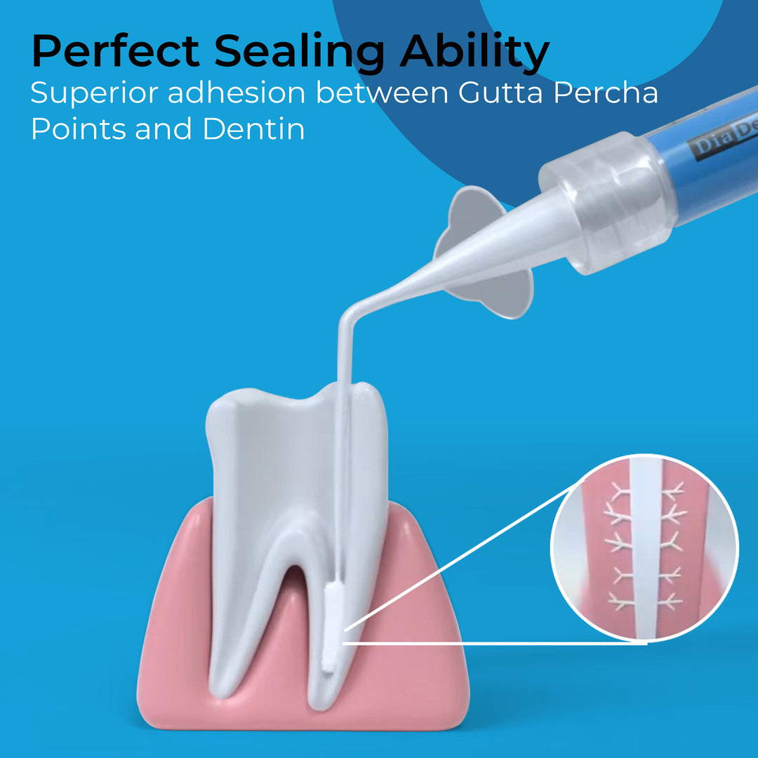 Dia-Root Bio Sealer، یک سیلر اماده مصرف دارای بایوسرامیک کلسیم سیلیکات با پایه MTA است. از ویژگی های این محصول میتوان به عدم انقباض و اتصال فوق العاده قوی آن اشاره کرد. این محصول ساخت کمپانی کرهای دیادنت بوده و در فروشگاه دنتیوا با ضمانت اصالت کالا ارائه میشود.ویژگیهای سیلر بایوسرامیک دیادنتاین محصول ویژگیهای متعددی دارد که آن را تبدیل به سیلر مناسب برای پرکردگیهای دائمی و تمام تکنیکهای پرکردگی با گوتا پرکا تبدیل کرده است. ویژگیهای این محصول عبارتند از:سازگاری عالی با بافتهای دهان و دندانهابدون ایجاد حساسیت در بدندارای pH 12دارای خواص انتی باکتریالجلوگیری از ایجاد عفونت و پوسیدگیباندینگ فوق العاده عالی به دنتین و مواد گوتا پرکاآماده مصرفکاهش زمان درمان و صرفه جویی در وقتجریان پذیری مناسب و بهینهاستفاده آسان و راحتقیمت مناسبعملکرد عالیشرینکیج فوق العاده پایین در حد صفر!حلالیت بسیار کممقاوم در برابر شستشو، بدون ایجاد ریزنشت و میکرولیکیجدارای هیدرات سیلیکات کلسیم و بهبود سیلینگبا ایجاد کمترین میزان التهابآزادسازی یون کلسیم و کمک به بازسازی استخوان و بافت دندانرادیواپاسیتی عالی، قابلیت مشاهده آسان در عکسهای رادیوگرافیستینگ تایم سیلر بایوسرامیک دیادنت، حدودا 6 ساعت است. البته ستینگ تایم این محصول تا حدودی بسته به وضعیت روت کانال هم بستگی دارد.بستهبندی و پکیجینگ سیلر بایوسرامیک دیادنتسیلر بایوسرامیک دیادنت به صورت سرنگهای آماده تولید و عرضه میشود. هر بسته بندی سیلر بایوسرامیک دیادنت، حاوی یک سرنگ 2 گرمی از سیلر به همراه تعدادی تیپ مخصوص است. این محصول به آماده سازی و مخلوط کردن نیازی نداشته و می توانید بلافاصله پس از خرید، از آن استفاده کنید.نحوه استفاده از سیلر بایوسرامیک دیادنتاز این محصول میتوان هم به کمک دستگاه آبچوراتور و هم طبق تکنیک single cone استفاده کرد. در تکنیک single cone مراحل استفاده به شرح زیر است:آماده سازی دندان و پاکسازی کانال دندانپرکردن کانال دندان تا یک سوم کرونال با سیلر بایوسرامیک دیادنتقراردادن گوتا پرکا و پرکردن اپکس دندان با آنحذف مقادیر اضافه سیلر و گوتا پرکا از کانال دندانکامل کردن درمان ریشه دنداننحوه استفاده از سیلر بایوسرامیک دیادنت به کمک دستگاه آبچوراتور نیز به شرح زیر است:آماده سازی و پاکسازی کانال دندانپرکردن یک سوم کرو