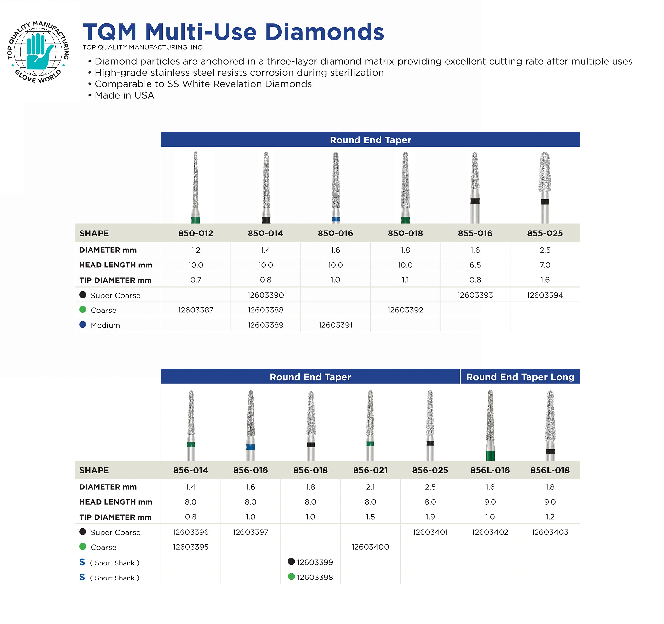 فرز الماسی مدل مخروطی ته گرد توربین - Dental Diamond Burs Round End Tapers 850:این فرز در آماده سازی تاج و Inlay/Onlay و خالی کردن پرکردگیهای قدیمی مورد استفاده قرار میگیرد.فرز الماسی شماره 850 برند دندیادر رنگ های سبز و آبی و قرمز و سایزهای 014 و 016 و بسته بندی 5 عددی عرضه می گردد.
