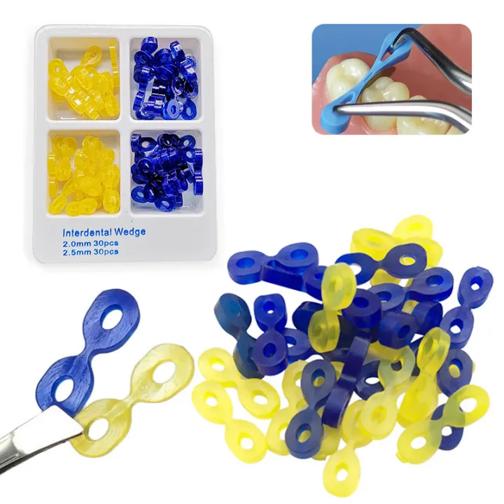 وج الاستیک - Elastic Fixing Wedge:این نوع وج در واقع گیرههای حلقه ای الاستیک است که وج زرد رنگ با ضخامت 2 میلیمتر و وج آبی رنگ با ضخامت 2.5 میلیمتر تولید شده است. قابل اتوکلاو تا دمای 150 درجه سانتیگراد و استریلیزاسیون بوده و با استفاده از انبرهای مخصوص در محل قرار میگیرد.وج الاسیتک از برند TorVM در رنگهای آبی (سخت) با ضخامت 2.5 میلیمتر و زرد (نرم) با ضخامت 2 میلیمتر و بستههای 10 عددی در فروشگاه اینترنتی دندانت عرضه میشود.
