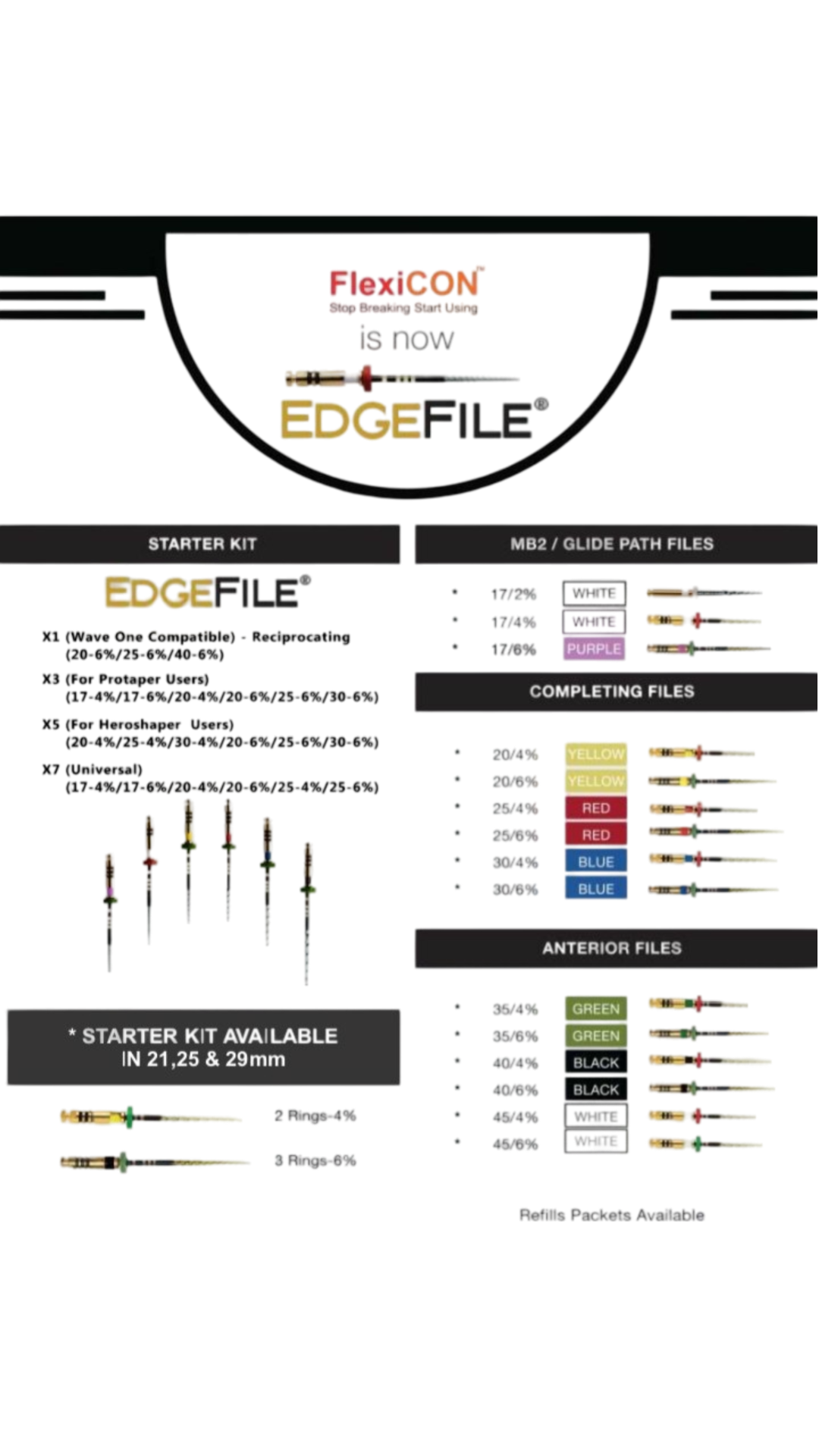 از این فایلها میتوان به عنوان جایگزینی برای سیستم پروتیپر استفاده کرد.– انعطاف عالی – توانایی خم شدن تا 90 درجه– مقاومت بالا– به منظور حفظ آناتومی اپیکال بعد از خم شدن به حالت اولیه بر نمیگردد.– سرعت:300 – 500 RPM– تورک:300 g-cm– سایزبندی:N1 (17.06)N2 (17.04)C1 (20.06)C2 (25.06)C3 (30.06)C4 (40.06)