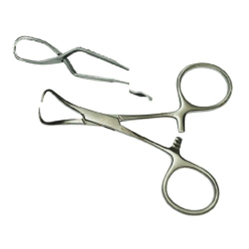شان گیر - Towel clip:جهت نگهداری شان ها یا گرفتن بافت با هدف اعمال کشش در موضع جراحی به کار میرود.در قسمت انتهایی دندانه هایی قرار دارد که جهت قفل کردن کاربرد دارد.دارای دو تیغه تیز در قسمت جلویی می باشد که در هنگام بسته شدن بر روی هم سوار می گردد.قسمت جلویی خمیده می باشد تا نوک شان گیر بیش از حد وارد بافت نشود.شان گیر برند دنتال دیوایسبا طول 14 سانتی متری و جنس استیل عرضه می گردد.