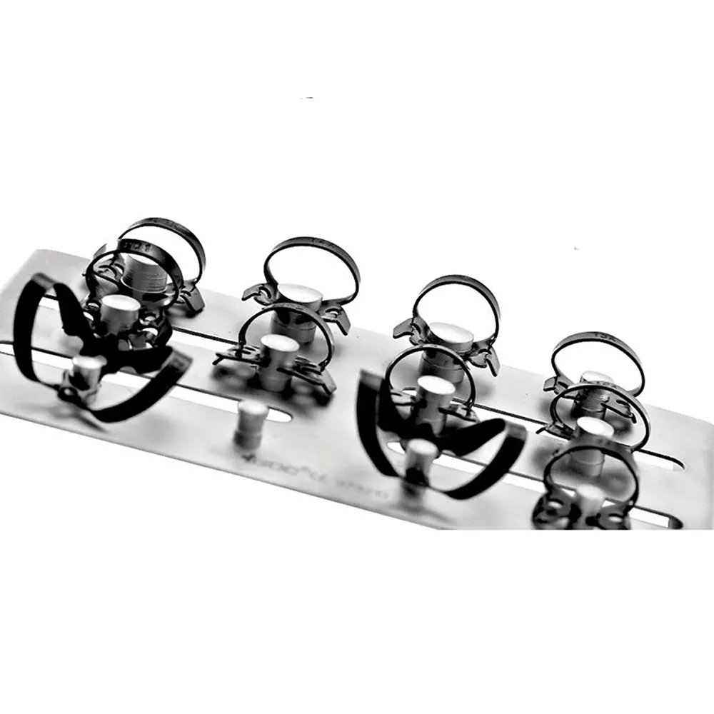 توضیحاتجنس آلیاژ:تیتانیومیبرند : کاریزما (Charisma)کلمپ رابردم تیتانیومیClamp Titaniumتوضیحات:می تواند دندان هایی را که نسج تاجی باقی مانده کم یا ضعیفی دارند به شکل محافظه کارانه ساپورت کند و به خوبی ناحیه عمل را از محیط مرطوب دهان جداسازی نموده و مانع انتقال آلودگی های بزاق به ناحیه مذکور شود.از حوادث احتمالی مانند افتادن وسایل ریز به مجاری تنفسی و گوارشی بیمار جلوگیری می کند.این کلمپ قابل اتوکلاو و استریل شدن نیز می باشد و از آنجایی که با مخاط و خون بیمار در تماس است نیاز هست که برای هر بیمار این کلمپ تعویض شود و پس از اتوکلاو شدن برای بیماران بعدی استفاده گردد.کاربرد:کلمپ دندانی برند کاریزمادر سایزهای زیر عرضه می گردد.NO.W3: مولر پایینNO.206: مولر بالا بزرگNO.205: مولر بالا بزرگNO.12.a: مولر بالا چپ و راستNO.2: پرمولر بالا و پایین کوچکNO.7: مولر پایینNO.W7: مولر پایین