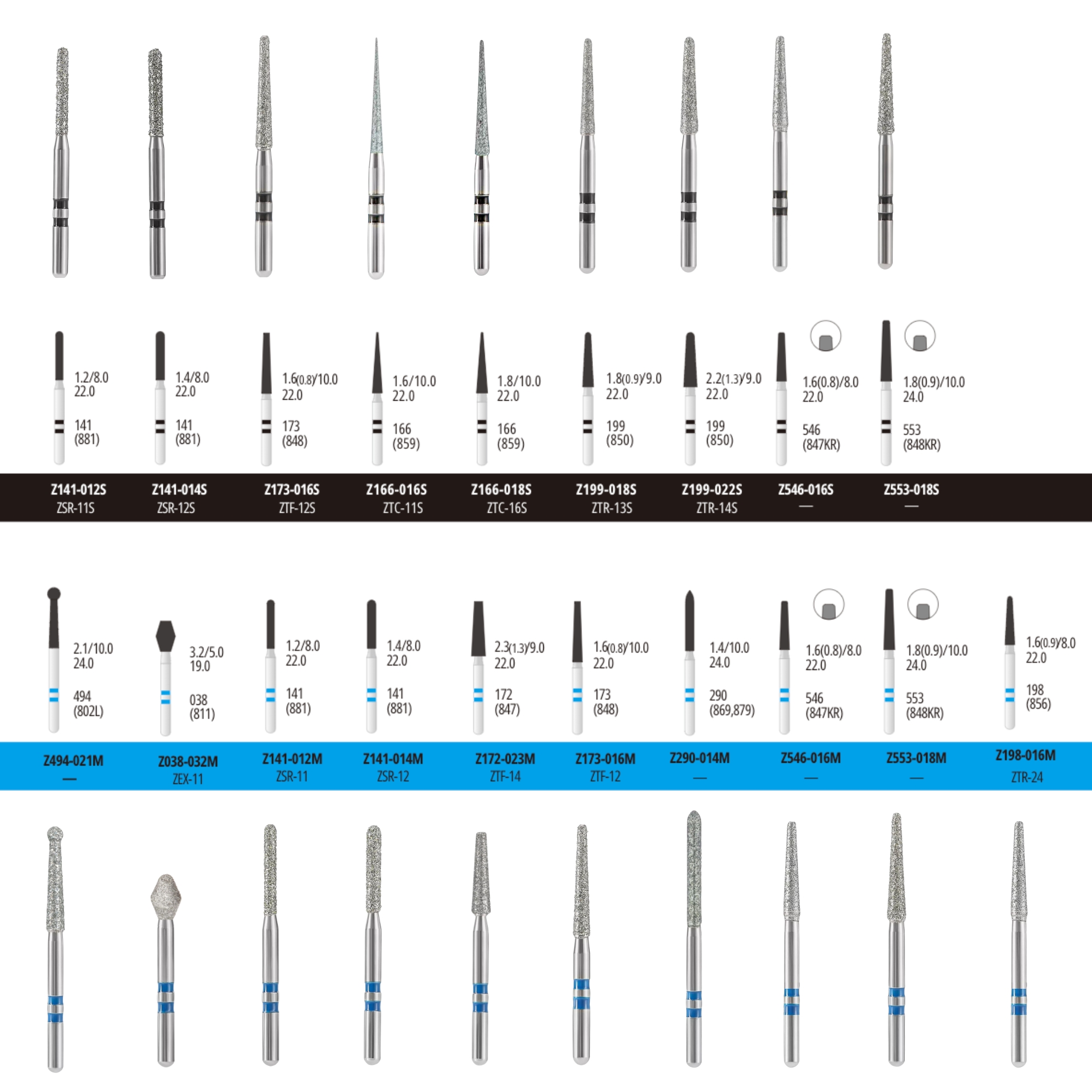 فرز الماسی مدل استوانهای ته صاف فرم 172 - Dental Diamond Burs truncated conical 847
