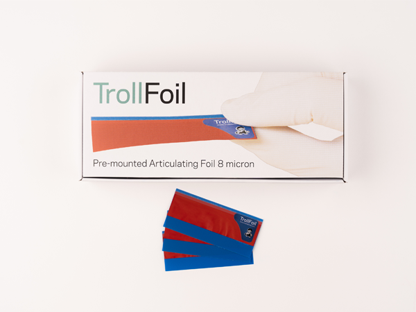 کاغذ آرتیکولاسیون - TrollFoil Articulating Paper:پژوهشها نشان میدهند که به هر میزان که ضخامت کاغذ آرتیکولاسیون کمتر باشد، مارکهای دقیقتری برجا خواهد گذاشت. در مدل TrollFoil شاهد محصولاتی با بستههای 100 عددی و 500 عددی هستیم که همگی ضخامتهای 8 میکرونی دارند. در مدل ترال فویل طلایی TrollFoil 4.5 نسبت به مدل قبلی نازکتر است که همین مورد باعث برجای گذاری مارکهای دقیقتر میشود.کاغذ آرتیکولاسیون برند Directa ساخت سوئیس در مدلهای ترال فویل TrollFoil و TrollFoil 4.5 در فروشگاههای اینترنتی دندانت عرضه میشود.