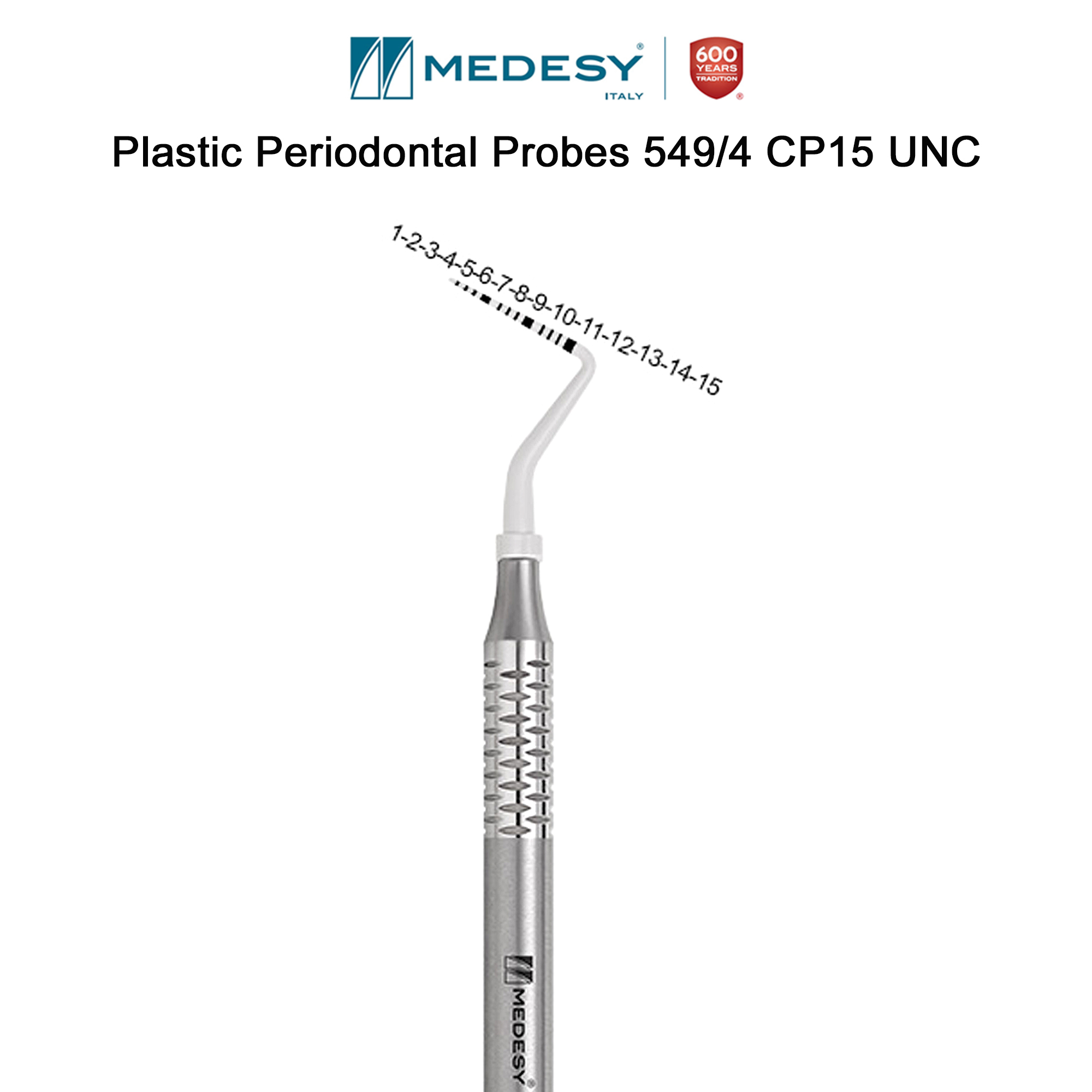 پروب مدرج - Sonda Parodontale:این محصول در واقع یک نوآوری در سری محصولات پروپ از برند Medesy است چرا که هر جز از ساختار آن (برای مثال مقیاسهای اندازهگیری آن) با دقت طراحی و ساخته شده است. همچنین مقیاس اندازهگیری این محصول برخلاف نسخههای پیشین خود با ساختار CNC (برش لیزری) ایجاد و شماره گذاری شده، پس در طول زمان تغییر رنگ نداده و از بین نمیرود.این محصول نوعی خاص از پوشش را دارد که بهپوشش انحصاریDiamond Like Carbon (DLC)معروف است. این پوشش از تغییر رنگ جلوگیری میکند، کنتراست ایجاد میکند و در نهایت خواندن اندازهها را بسیار آسان میکند.از این پروب برای اندازه گیری عمق سالکوس وعمق پاکت استفاده میشود. در واقع نوک پروب به صورت موازی با محور طولی دندان وارد پاکت شده و به آرامی حرکت میکند و تمامی نواحی را اندازه گیری میکند.پروب مدرج Sonda Parodontale محصولی از برند ایتالیایی Medesy در دو نوع CP11 و CP15 با جنس استیل ضد زنگ در فروشگاه اینترنتی دندانت عرضه میگردد.****بهترین برندهایپروبرا درفروشگاه اینترنتی دندانتتهیه کنید********ابزار جراحی و پریودر وبسایت دندانت****