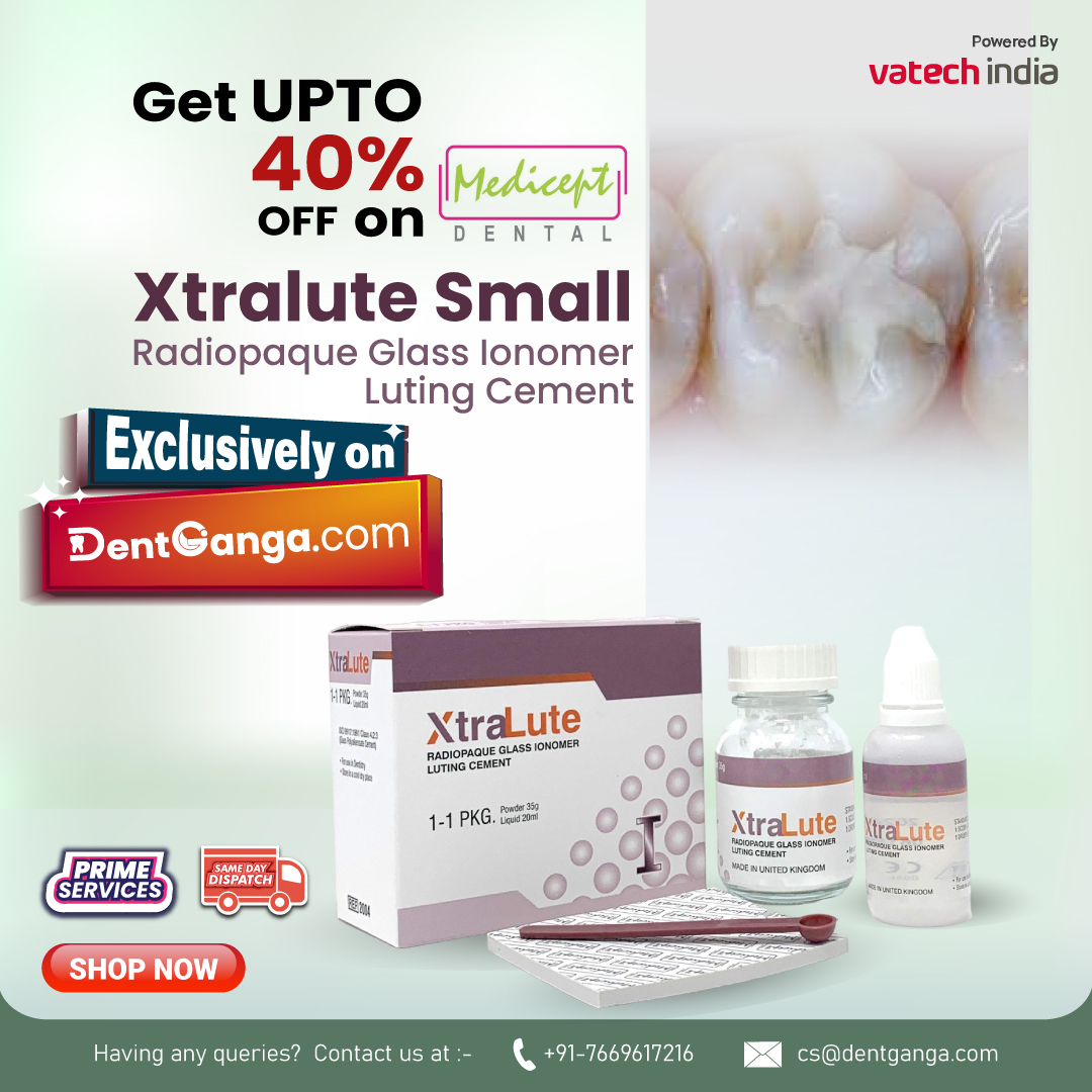 گلاس آینومر لوتینگ - XtraLute:برای سمان کردن کراون و بریج، اینله و آنله و براکت های ارتودنسی مناسب است.رادیواپاسیتی مطلوبی دارد و مشاهده آن در تصویر رادیوگرافی امکان پذیر است.در برابر سایش و فشار بالا (128 مگاپاسکال) مقاوم است.استحکام عالی و دوام طولانی مدت دارد.از دیگر ویژگی های این محصول می توان به ایجاد لایه ای با ضخامت بسیار کم (5میکرون) ، زیست سازگار و حداقل تحریک پالپ، آزاد سازی فلوراید و جلوگیری از پوسیدگی ثانویه و هندلینگ آسان اشاره کرد.گلاس آینومر لوتینگ برند مدیسپتدر دو بسته بندی که بسته کوچک حاوی پودر 15 گرمی، مایع 10 میلی لیتری به همراه میکسینگ پد و بسته بزرگ حاوی پودر 35 گرمی، مایع 20 میلی لیتری به همراه میکسینگ پد عرضه می گردد.**** خریدگلاس آینومر دندانپزشکیبا بهترین قیمت کلیک کنید ******** خرید بهترینابزار دندانپزشکیبا کیفیتی تضمینی تنها در دندانت ****